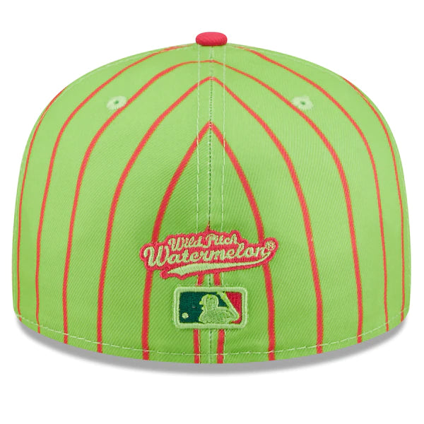 The MLB and Big League Chew have teamed up to bring New York Yankees fans this one of a kind, Wild Pitch Watermelon Flavor Pack 59FIFTY Fitted Hat. Featuring a high crown and flat bill, this New Era hat will take your game day look to the next level. Its classic and fun graphics combine your New York Yankees and your all-time favorite Big League Chew flavor, making it unlike anything else in your collection.