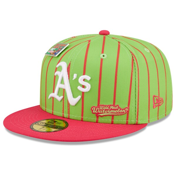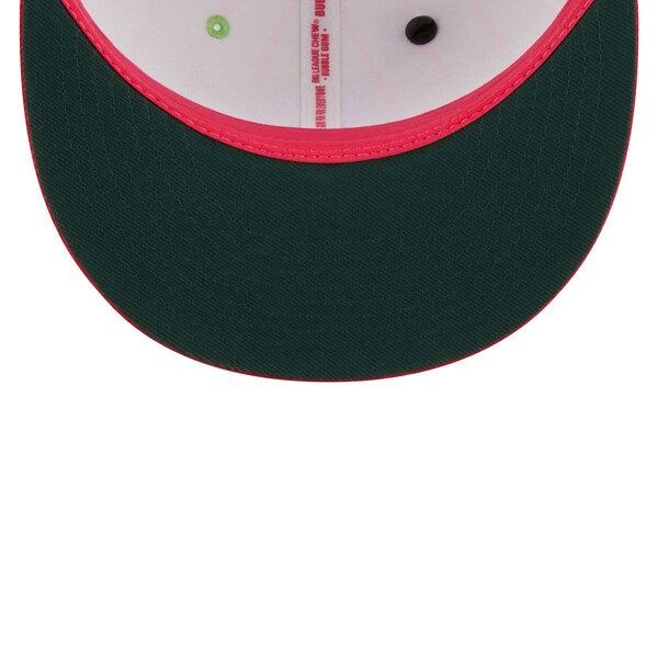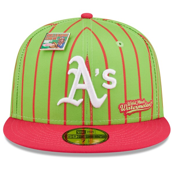 The MLB and Big League Chew have teamed up to bring Oakland Athletics fans this one of a kind, Wild Pitch Watermelon Flavor Pack 59FIFTY Fitted Hat. Featuring a high crown and flat bill, this New Era hat will take your game day look to the next level. Its classic and fun graphics combine your Oakland Athletics and your all-time favorite Big League Chew flavor, making it unlike anything else in your collection.