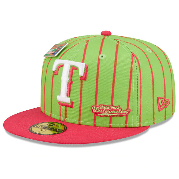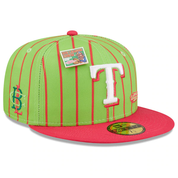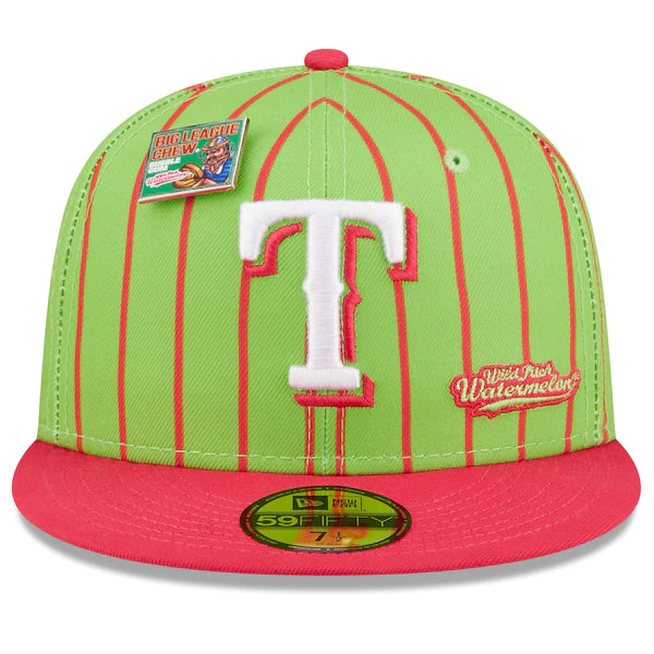 The MLB and Big League Chew have teamed up to bring New York Rangers fans this one of a kind, Wild Pitch Watermelon Flavor Pack 59FIFTY Fitted Hat. Featuring a high crown and flat bill, this New Era hat will take your game day look to the next level. Its classic and fun graphics combine your New York Rangers and your all-time favorite Big League Chew flavor, making it unlike anything else in your collection.