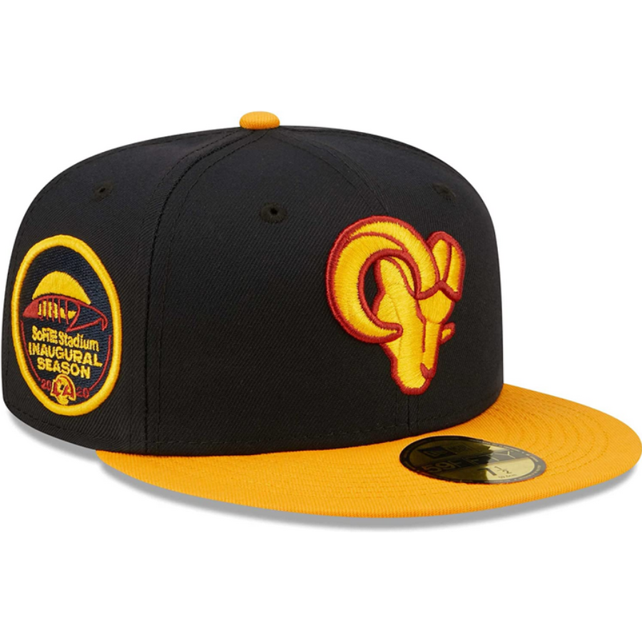 Celebrate Los Angeles Rams history with this eye-catching 59FIFTY fitted hat from New Era. It features the team's logo on the front and a SoFi Stadium Inaugural Season patch on the side in a bold colorway. Rep the Los Angeles Rams in style with this must-have hat.