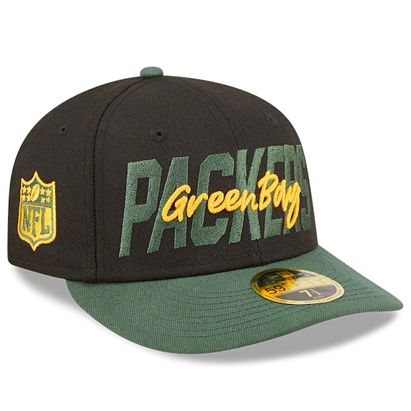 With your next pick, you should select this Green Bay Packers Low Profile 59FIFTY Fitted Hat from the official 2022 NFL Draft collection. This New Era cap features an NFL shield on the side and an official team color visor. Also sporting an embroidered version of your favorite team's logo on the rear of the cap, this gear has it all and will get you pumped for the upcoming Green Bay Packers season.