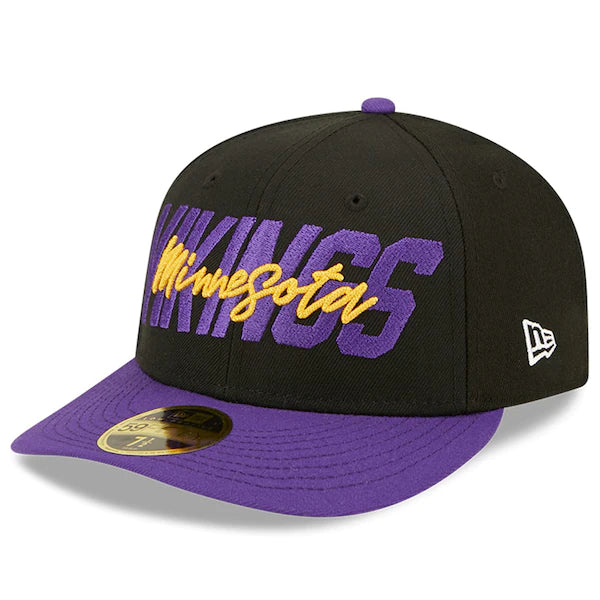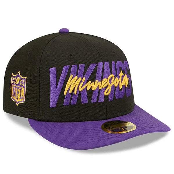 With your next pick, you should select this Minnesota Vikings Low Profile 59FIFTY Fitted Hat from the official 2022 NFL Draft collection. This New Era cap features an NFL shield on the side and an official team color visor. Also sporting an embroidered version of your favorite team's logo on the rear of the cap, this gear has it all and will get you pumped for the upcoming Minnesota Vikings season.