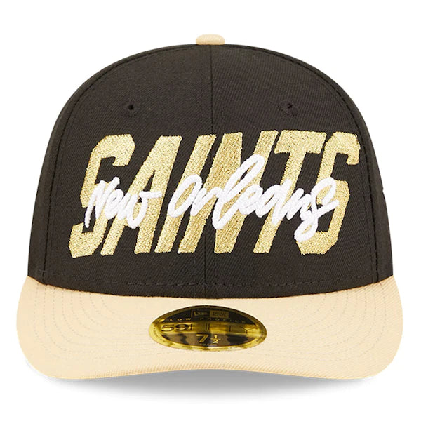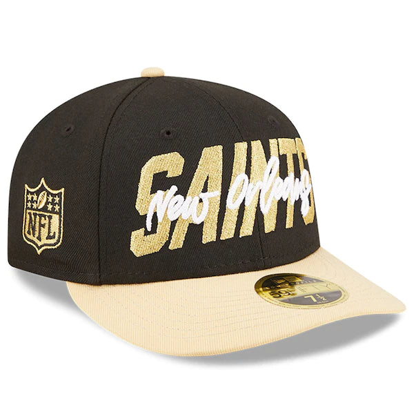 With your next pick, you should select this New Orleans Saints Low Profile 59FIFTY Fitted Hat from the official 2022 NFL Draft collection. This New Era cap features an NFL shield on the side and an official team color visor. Also sporting an embroidered version of your favorite team's logo on the rear of the cap, this gear has it all and will get you pumped for the upcoming New Orleans Saints season.