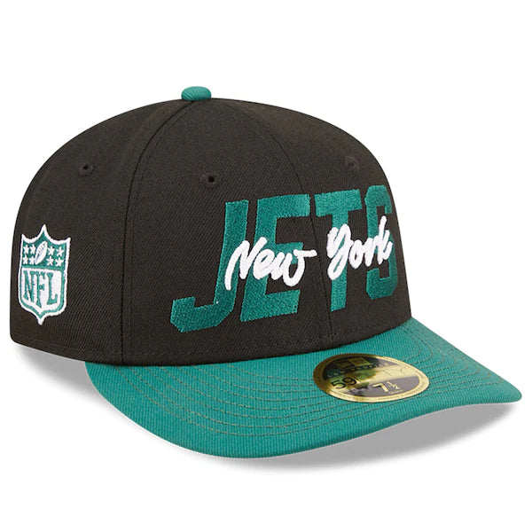 With your next pick, you should select this New York Jets Low Profile 59FIFTY Fitted Hat from the official 2022 NFL Draft collection. This New Era cap features an NFL shield on the side and an official team color visor. Also sporting an embroidered version of your favorite team's logo on the rear of the cap, this gear has it all and will get you pumped for the upcoming New York Jets season.