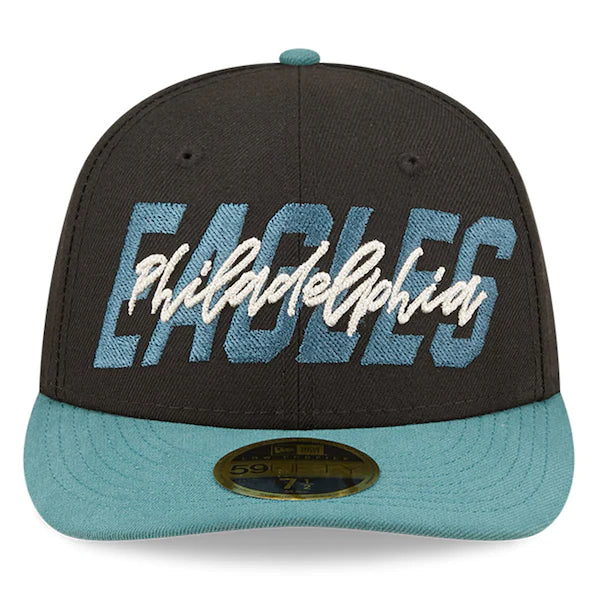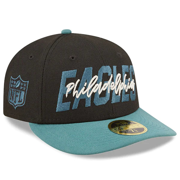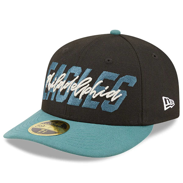 With your next pick, you should select this Philadelphia Eagles Low Profile 59FIFTY Fitted Hat from the official 2022 NFL Draft collection. This New Era cap features an NFL shield on the side and an official team color visor. Also sporting an embroidered version of your favorite team's logo on the rear of the cap, this gear has it all and will get you pumped for the upcoming Philadelphia Eagles season.