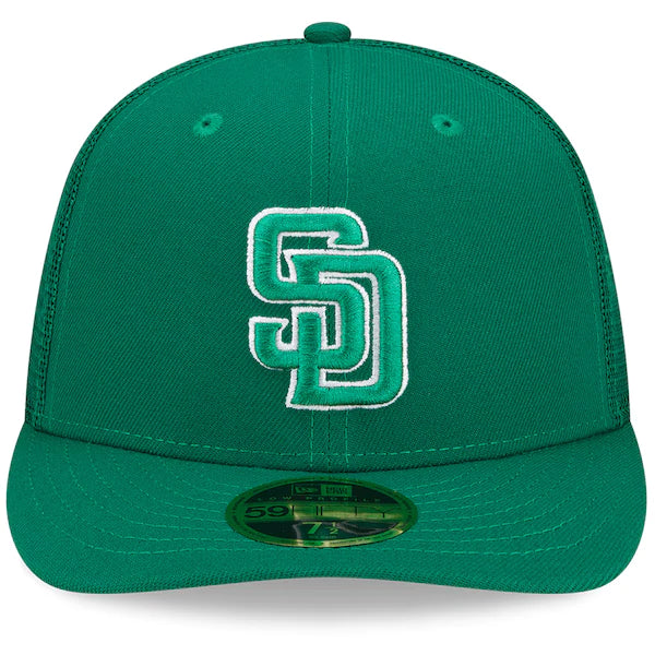 Celebrate your favorite holiday with the San Diego Padres when you grab this 2022 St. Patrick's Day On-Field Low Profile 59FIFTY Fitted Hat by New Era. Its low crown and curved bill make it a must-have, stylish addition to your team collection. It features embroidered San Diego Padres graphics and will bring the perfect amount of Irish luck to the next big game.
