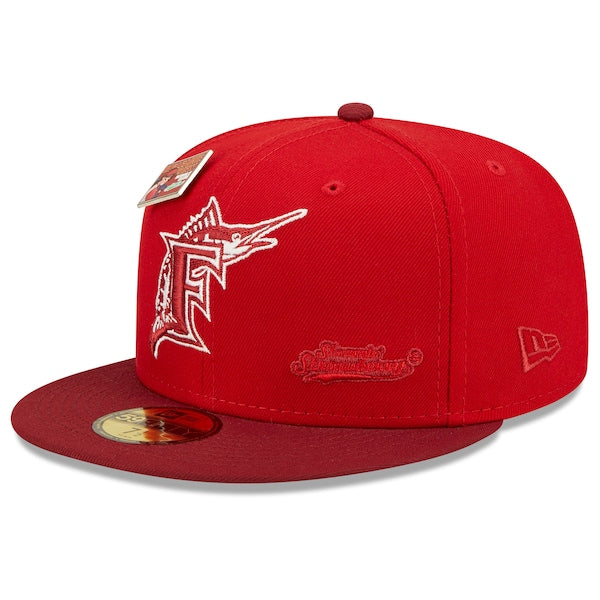 New Era MLB x Big League Chew Florida Marlins Slammin' Strawberry Flavor Pack 59FIFTY Fitted Hat - Scarlet/Cardinal