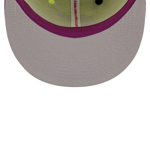 The MLB and Big League Chew have teamed up to bring Florida Marlins fans this one of a kind, Swingin' Sour Apple Flavor Pack 59FIFTY Fitted Hat. Featuring a high crown and flat bill, this New Era hat will take your game day look to the next level. Its classic and fun graphics combine your Florida Marlins and your all-time favorite Big League Chew flavor, making it unlike anything else in your collection.
