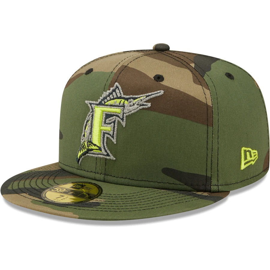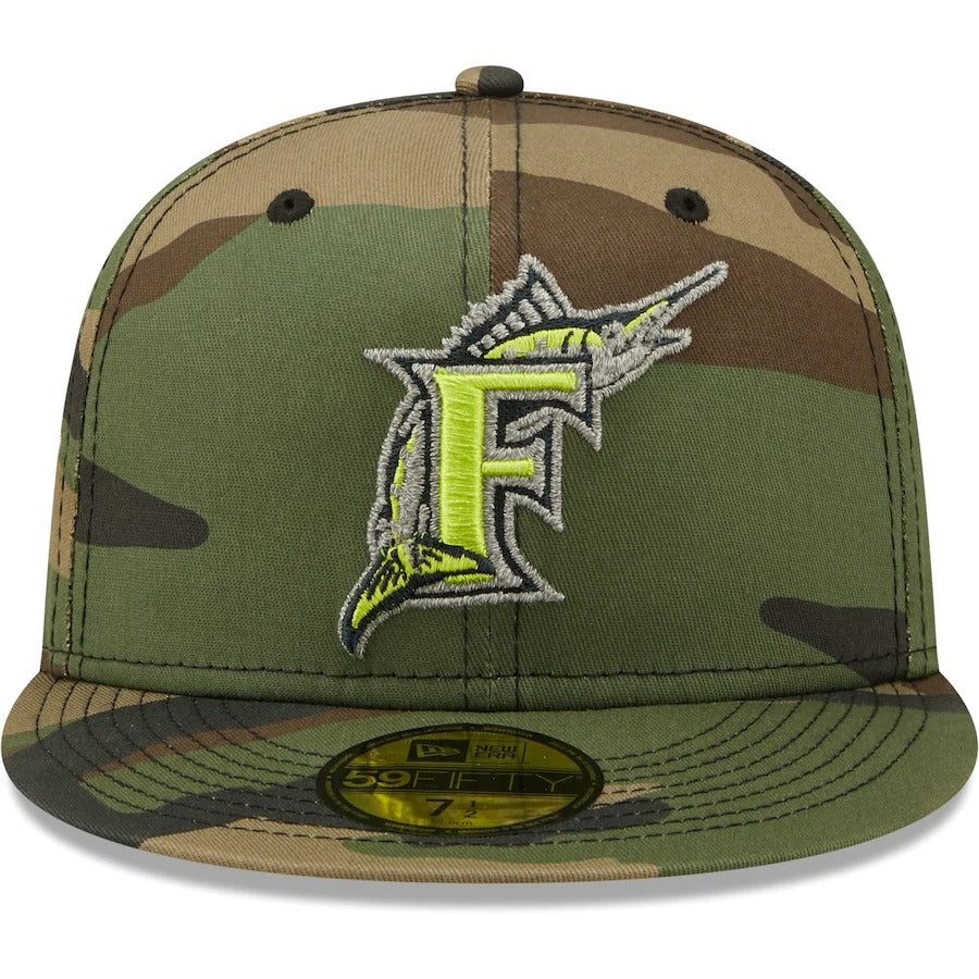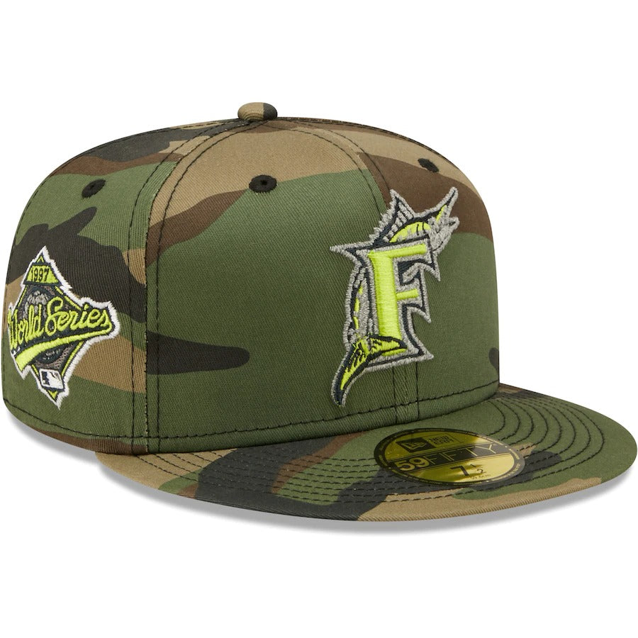 New Era Miami Marlins Camo Cooperstown Collection 1997 World Series Woodland Reflective Undervisor 59FIFTY Fitted Hat