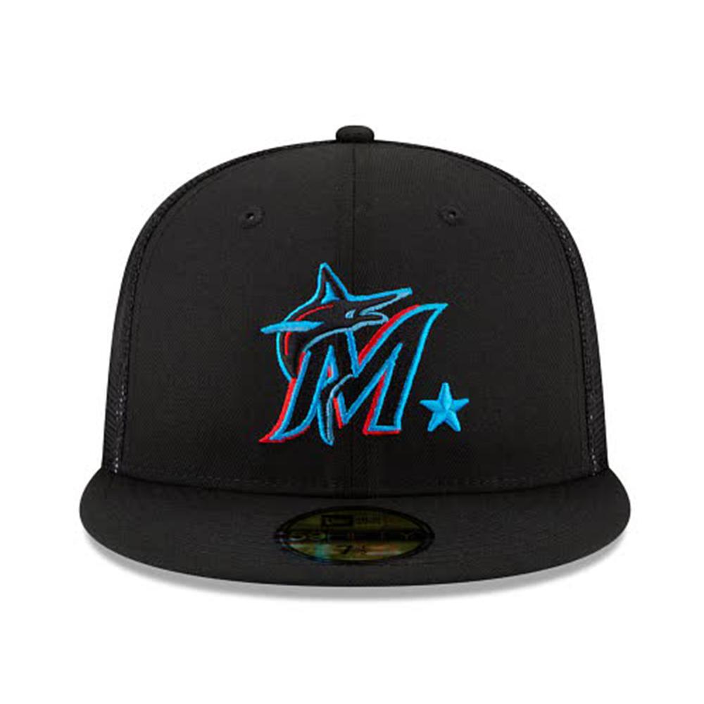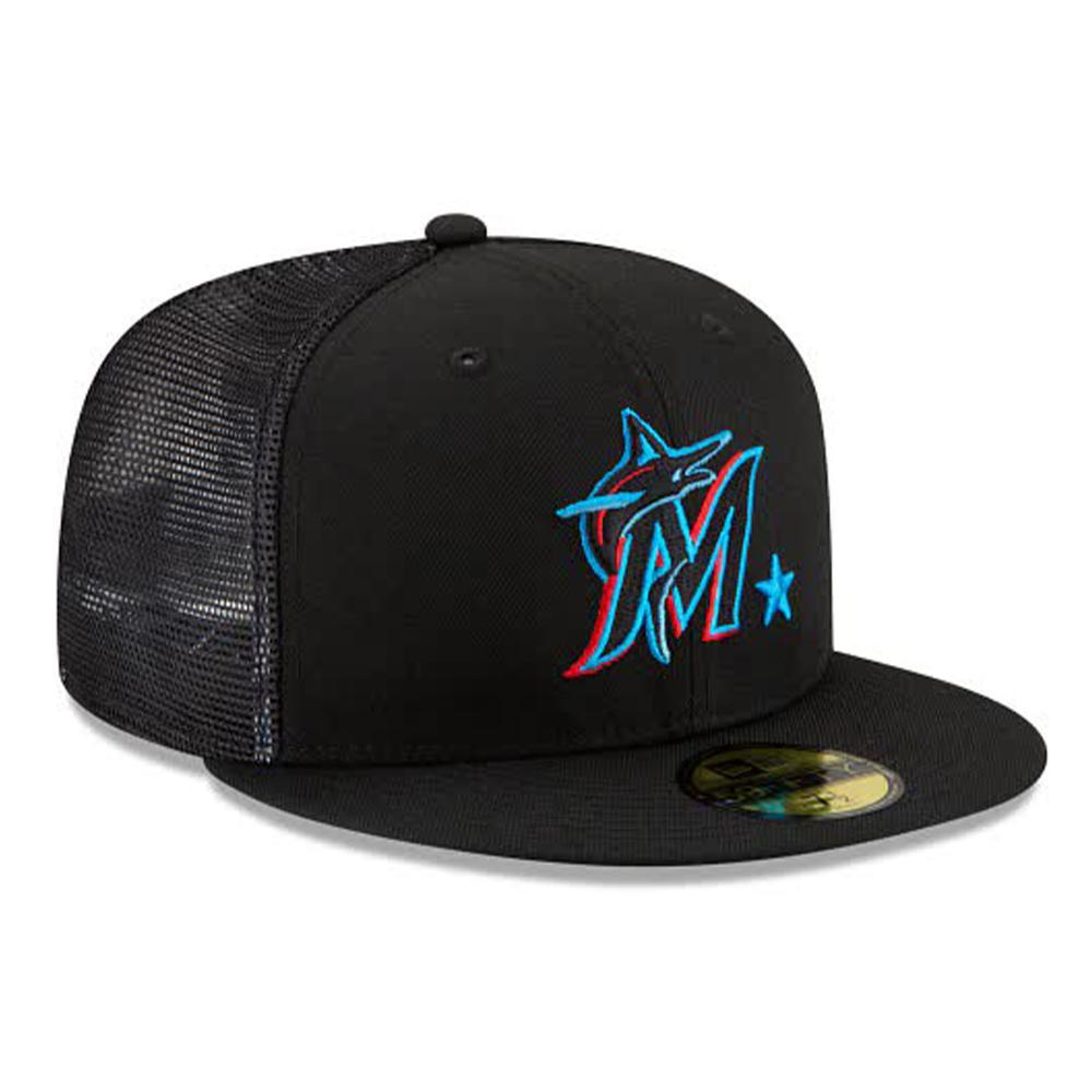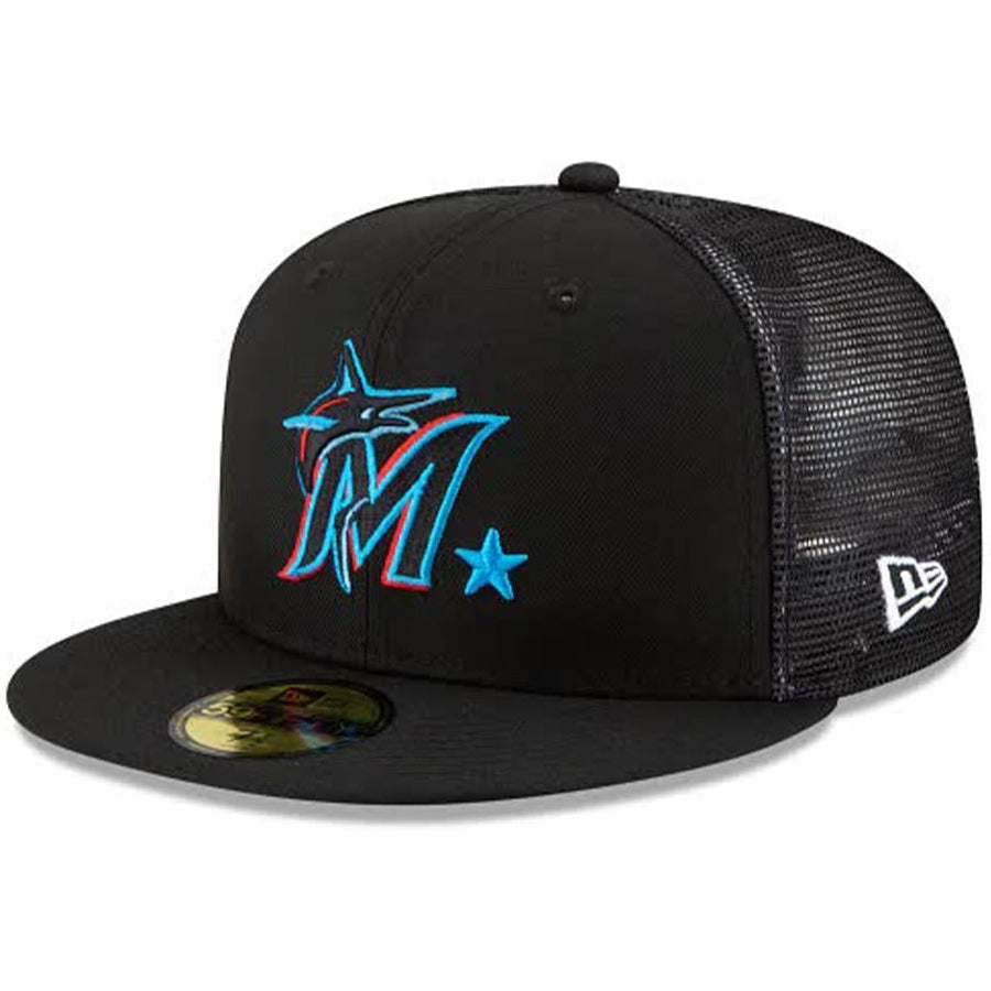 New Era Miami Marlins Navy Mesh Back Palm Tree Undervisor 59FIFTY Fitted Hat