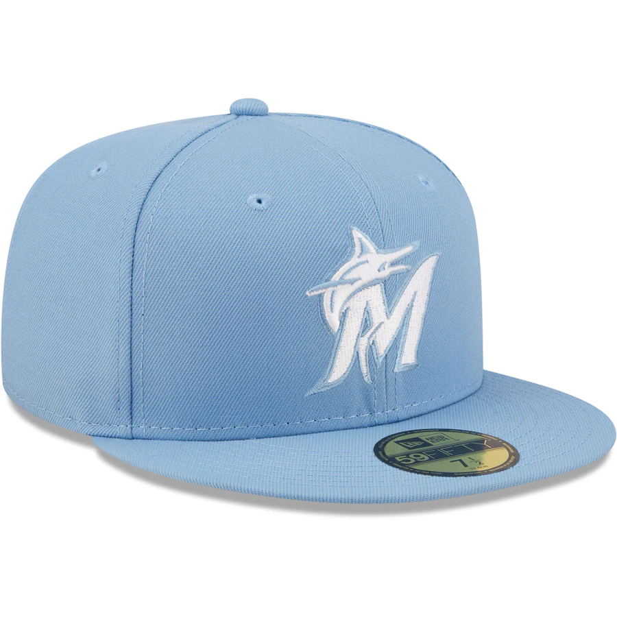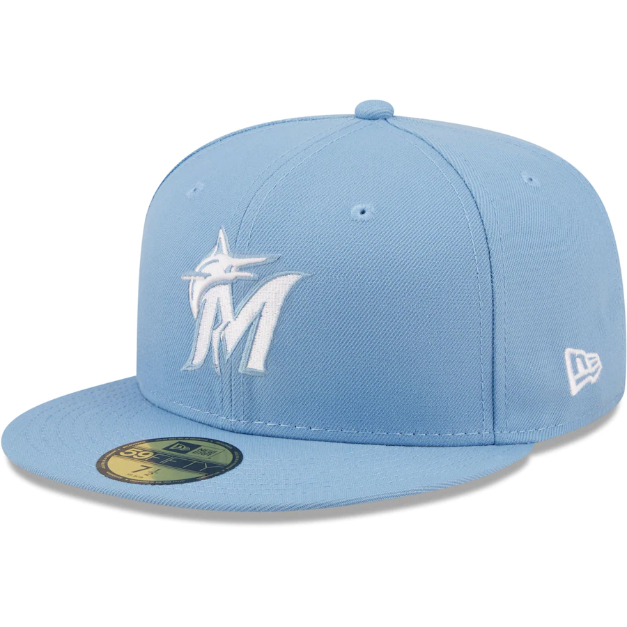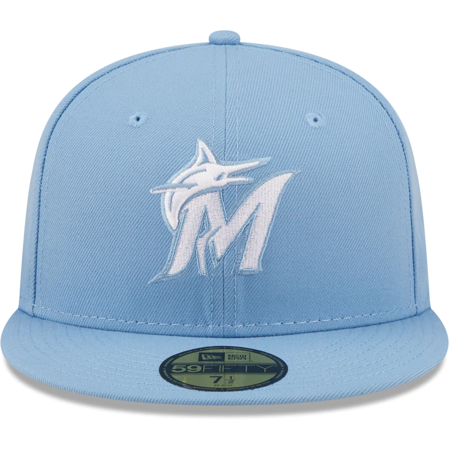 New Era Miami Marlins Sky Blue Logo White 59FIFTY Fitted Hat