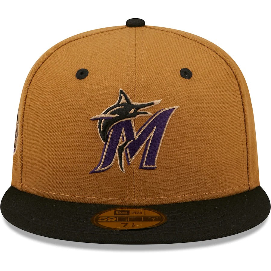 New Era Miami Marlins Tan/Black Marlins Park Cooperstown Collection Purple Undervisor 59FIFTY Fitted Hat