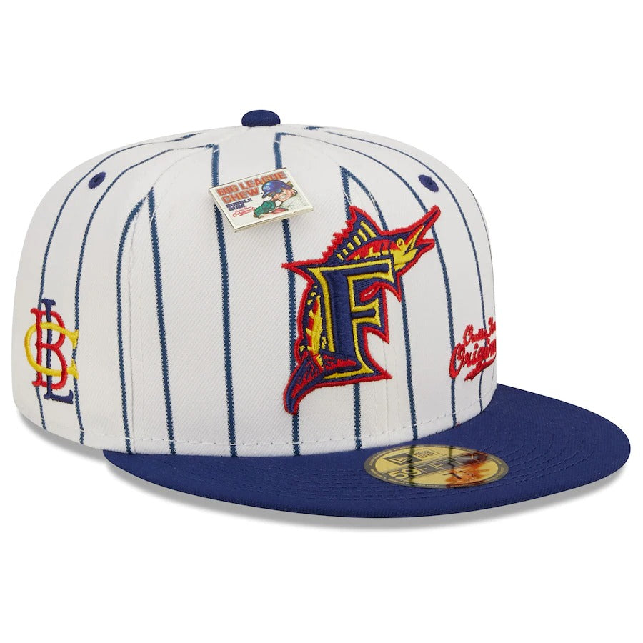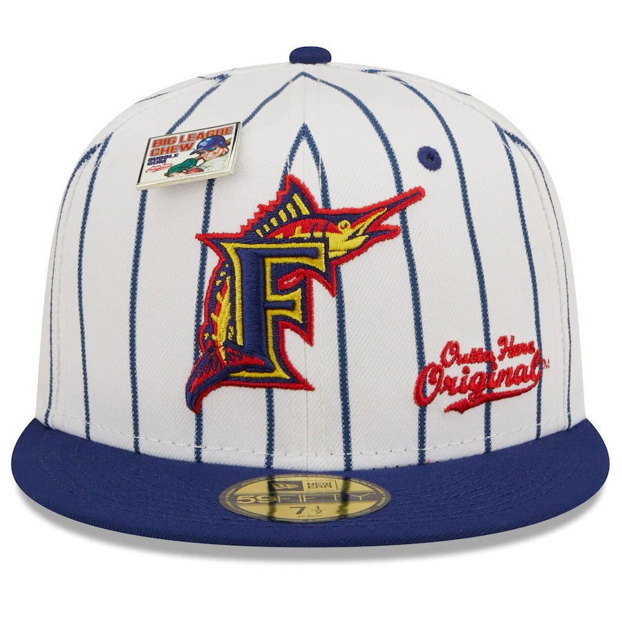 The MLB and Big League Chew have teamed up to bring Florida Marlins fans this one of a kind, Original 59FIFTY Fitted Hat. Featuring a high crown and flat bill, this New Era hat will take your game day look to the next level. Its classic and fun graphics combine your Florida Marlins and your all-time favorite Big League Chew flavor, making it unlike anything else in your collection.
