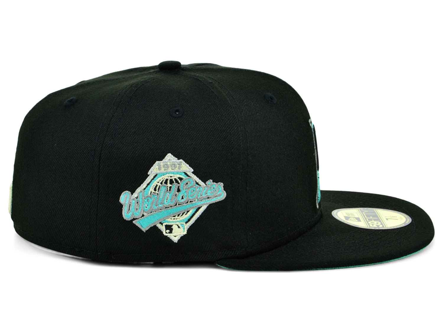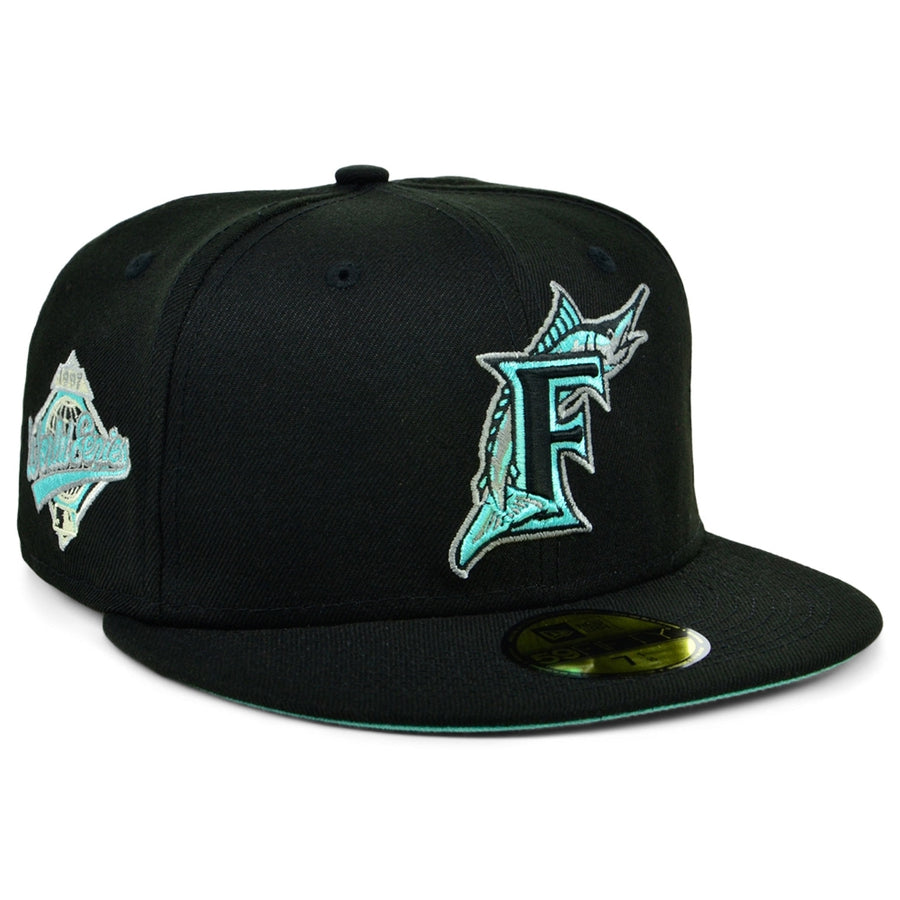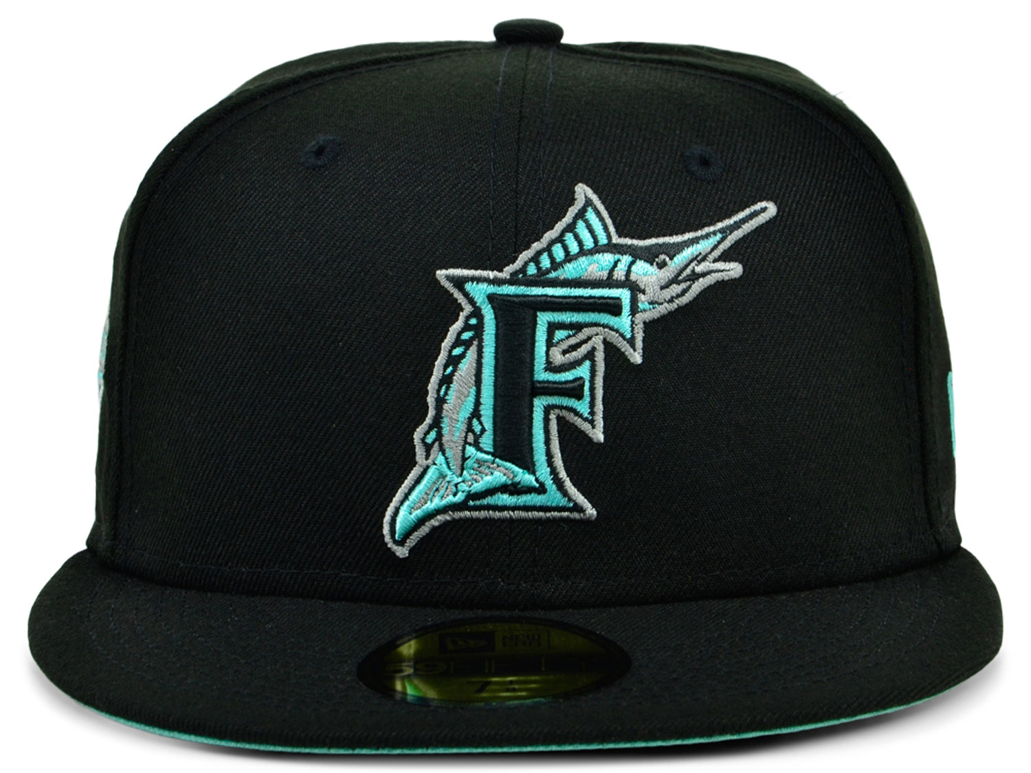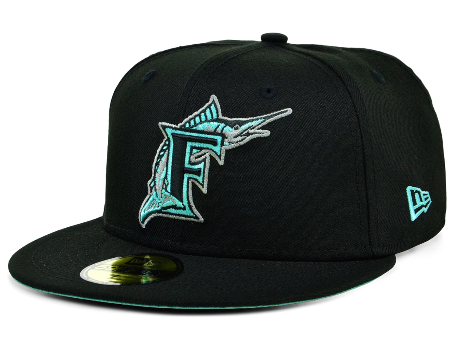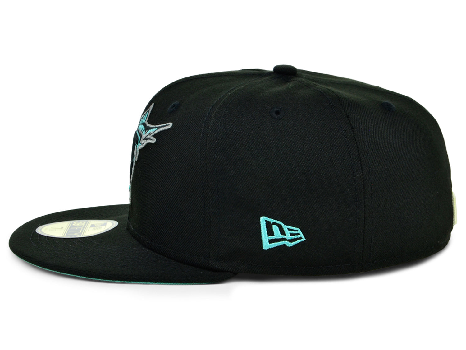 Celebrate your favorite team with this Florida Marlins MLB Color UV 59FIFTY Black Mint cap. This dark New Era cap has a high structured crown that sports the minty logo, a dynamic patch and embroidered accents to match. This cap will never be understated.