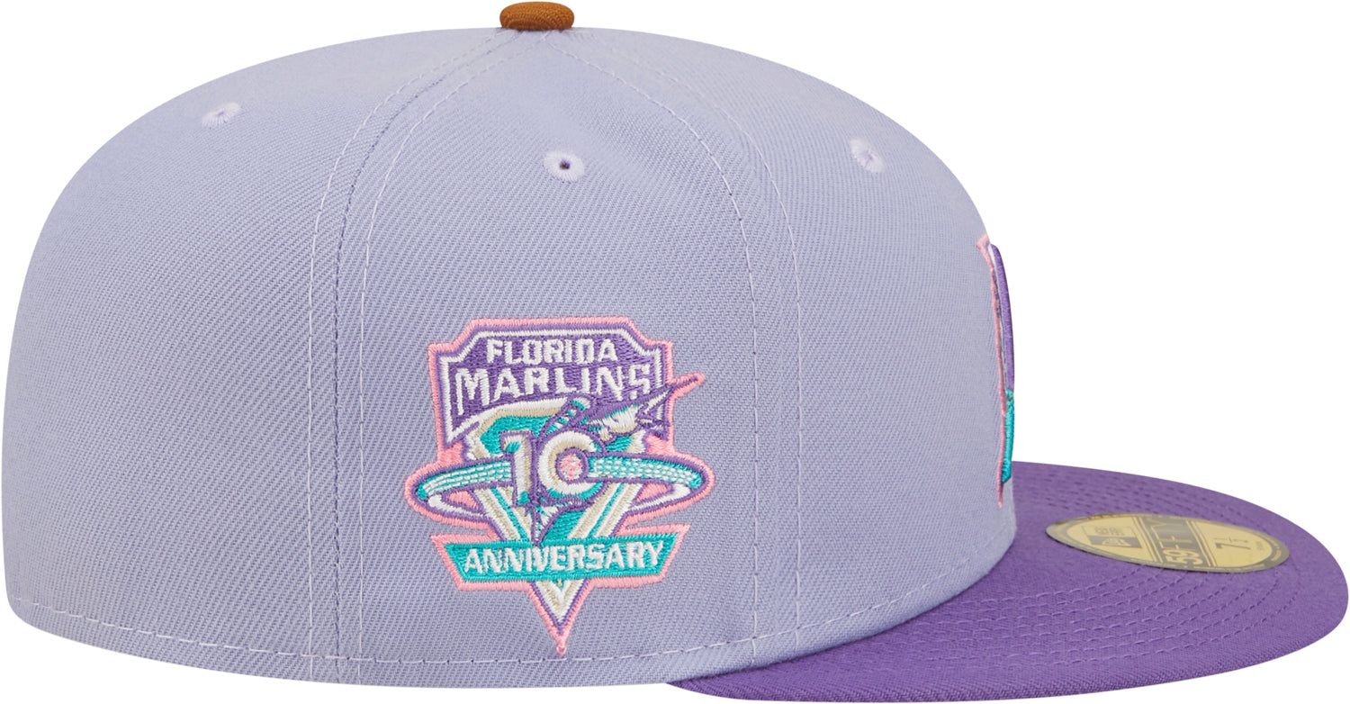 Lids Hat Drop is excited to bring unique and exclusive colorways to your favorite MLB team. This New Era Florida Marlins Bunny Hop 59FIFTY fitted is a high crown hat, structured with a flat rounded bill, threaded rivets, and a team patch to highlight the achievements. Find the look the fits your collection or wardrobe.