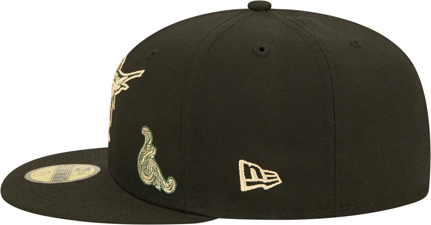 Lids Hat Drop is excited to bring unique and exclusive colorways to your favorite MLB team. This New Era Florida Marlins Cashed Check 59FIFTY is a high crown hat is structured with a flat rounded bill, threaded rivets, and a team patch to highlight the achievements. Find the look the fits your collection or wardrobe.