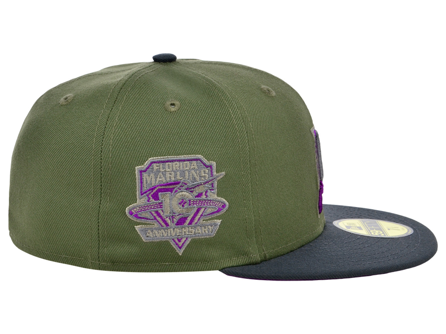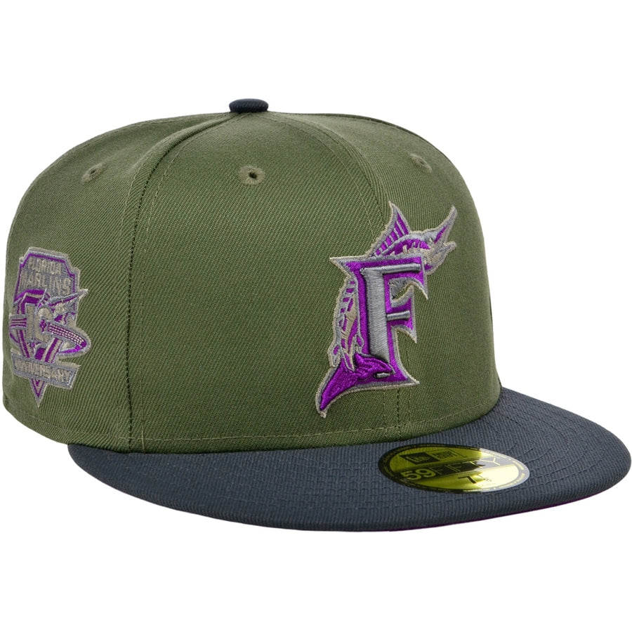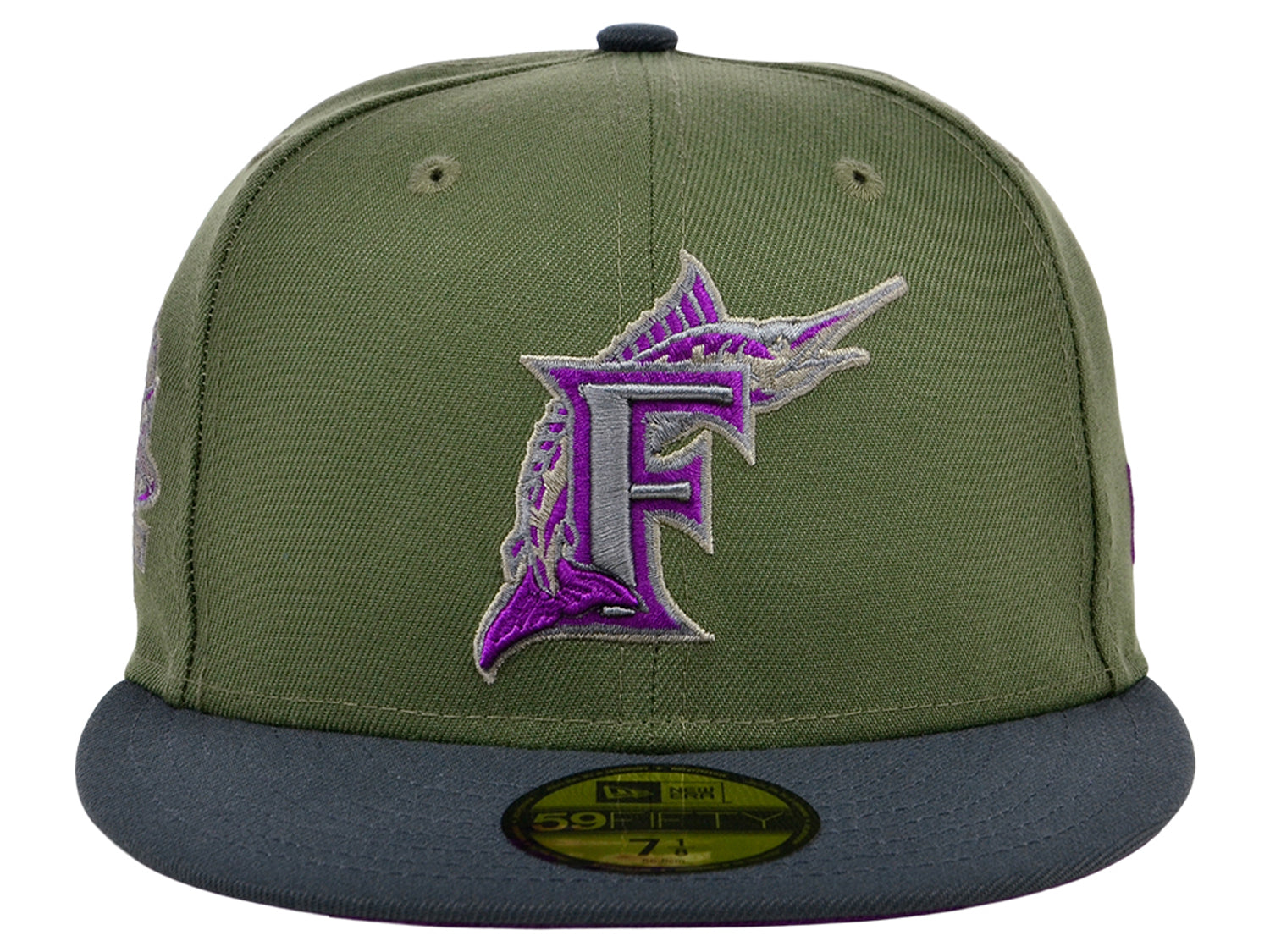 Lids Hat Drop is excited to bring unique and exclusive colorways to your favorite MLB team. This New Era Florida Marlins Mossy Haze 59FIFTY fitted hat has a high crown, is structured with a flat rounded bill, threaded rivets, and a team patch to highlight the achievements. Find the look the fits your collection or wardrobe.