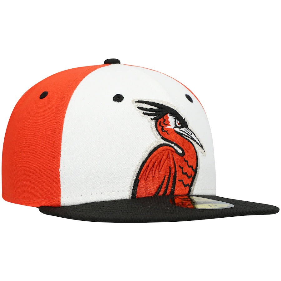 Wearing this New Era 59FIFTY hat on more than just game day allows your Delmarva Shorebirds fandom to be seen all the time. A trendy high crown and fitted construction pair for a classic design. Bold Delmarva Shorebirds embroidery completes this cap for an accessory that shows you're more than an average fan.