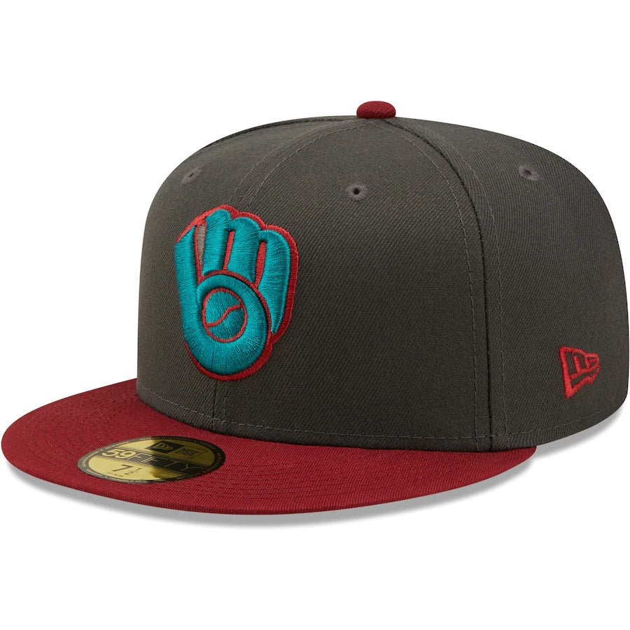 New Era Milwaukee Brewers Graphite/Cardinal County Stadium Titlewave 59FIFTY Fitted Hat