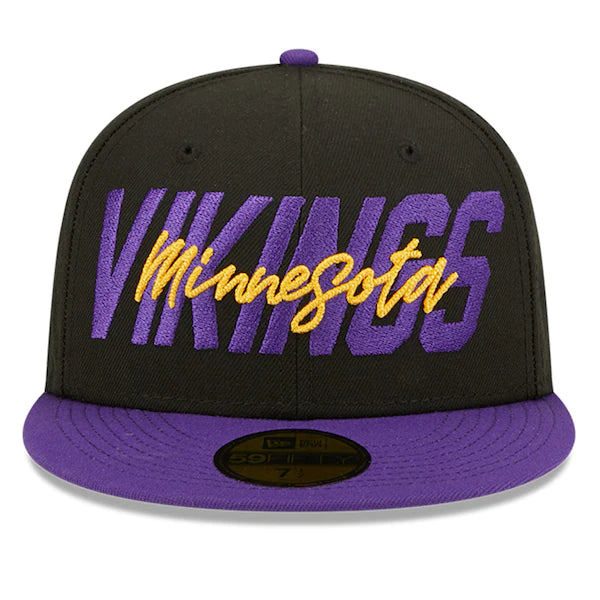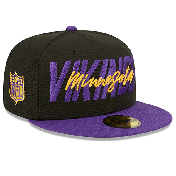 With your next pick, you should select this Minnesota Vikings On Stage 59FIFTY Fitted Hat from the official 2022 NFL Draft collection. This New Era cap features an embroidered NFL shield and an official team color visor. Sporting the same design and embroidered Minnesota Vikings graphics that the players will be wearing during the draft, you'll look and feel like the real deal every time you step out in this hat.