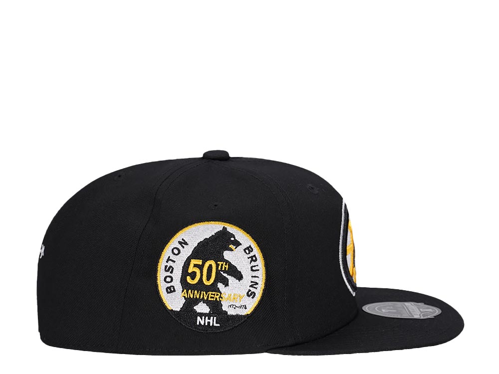 Pay homage to the Boston Bruins by adding this nostalgic Mitchell & Ness Vintage fitted hat. It offers a flat bill and structured construction for a more elevated, street-ready look. On top of that, the vibrant Boston Bruins embroidery and celebratory appliques make it the perfect commemorative addition to your gear collection.