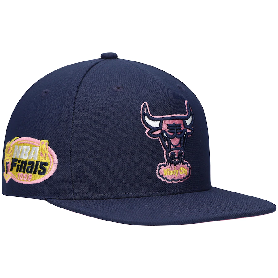 This Chicago Bulls Burnt Sunrise fitted hat from Mitchell & Ness is a unique and vibrant choice to top off any team look. The contrast-color undervisor adds a pop of color to this cap. The raised embroidered graphics and commemorative 1998 NBA Finals patch help make this headwear the obvious choice on Chicago Bulls game day.