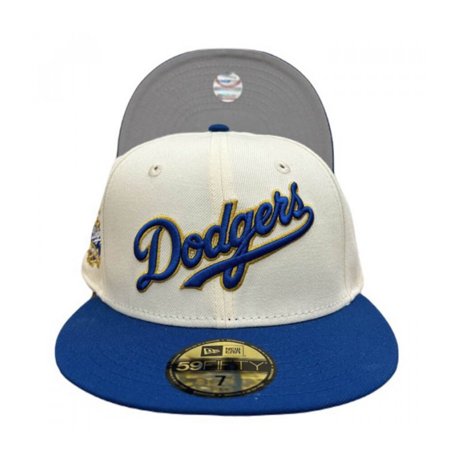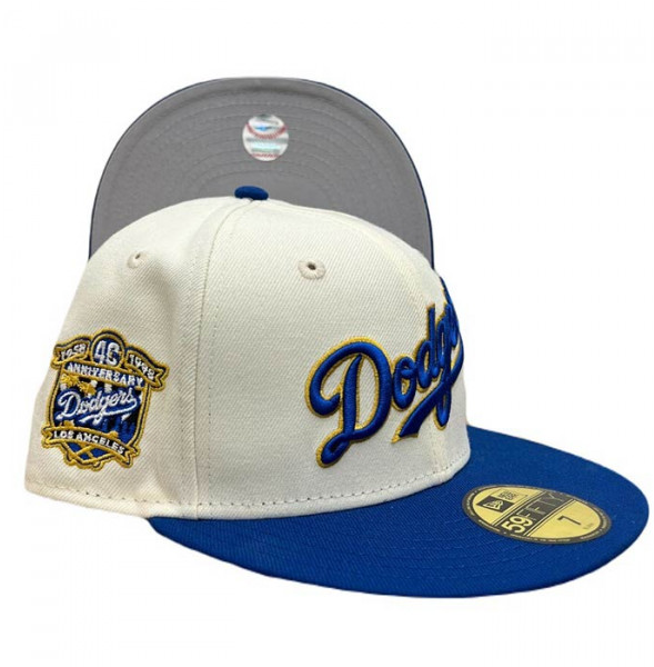 This New Era Los Angeles Dodgers "Five Mic Pack" Chrome 40th Anniversary 59FIFTY Fitted Hat was dropped by Pro Image Sports. The fitted has a chrome six panel structured high crown and embroidered eyelets with a royal blue fabric squatchee button. The fitted cap also has a royal blue flat bill with a grey undervisor. The front panel features the Los Angeles Dodgers logo embroidery and a side patch embroidery on the right panel. The left panel of the fitted displays the New Era logo and the official MLB logo embroidery on the rear crown.
