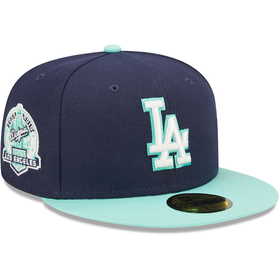 Never stop sporting your Los Angeles Dodgers pride with this 60th Anniversary 59FIFTY fitted hat from New Era. The raised team logo embroidered on the front of this cap proves that it's meant for a die-hard Los Angeles Dodgers fan. Plus, the structured construction and flat bill give it a touch of street-ready appeal, perfect for a night out.