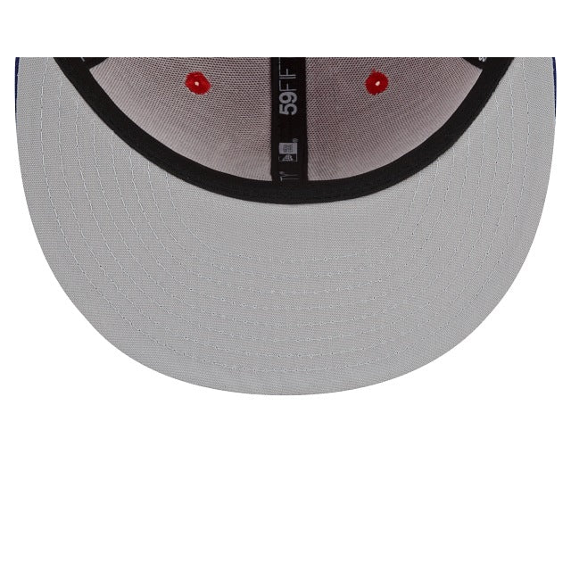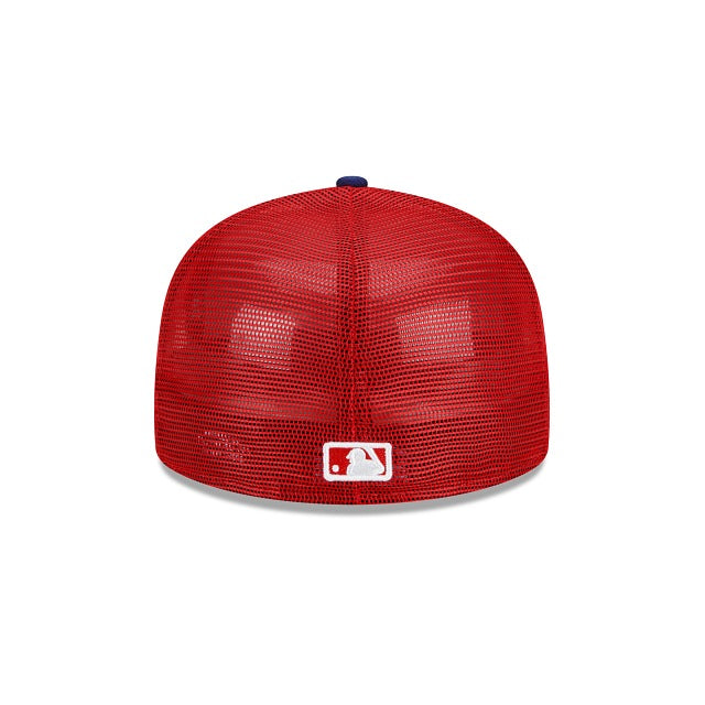 The Philadelphia Phillies 2023 Batting Practice 59FIFTY Fitted Cap features an embroidered Phillies logo at the front panels with a matching MLB Batterman logo at the rear and a gray undervisor.
