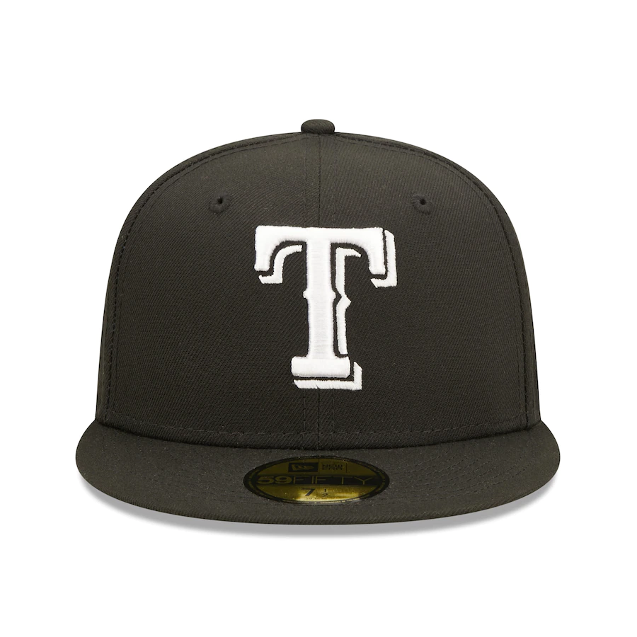 Add a classic touch to your Texas Rangers collection with this Black and White 59FIFTY fitted hat from New Era. Along with a high crown, it offers a structured construction to add some street-ready style to your fandom. Plus, it features spirited Texas Rangers graphics in the same shade as the cap itself to further elevate any look you put together.