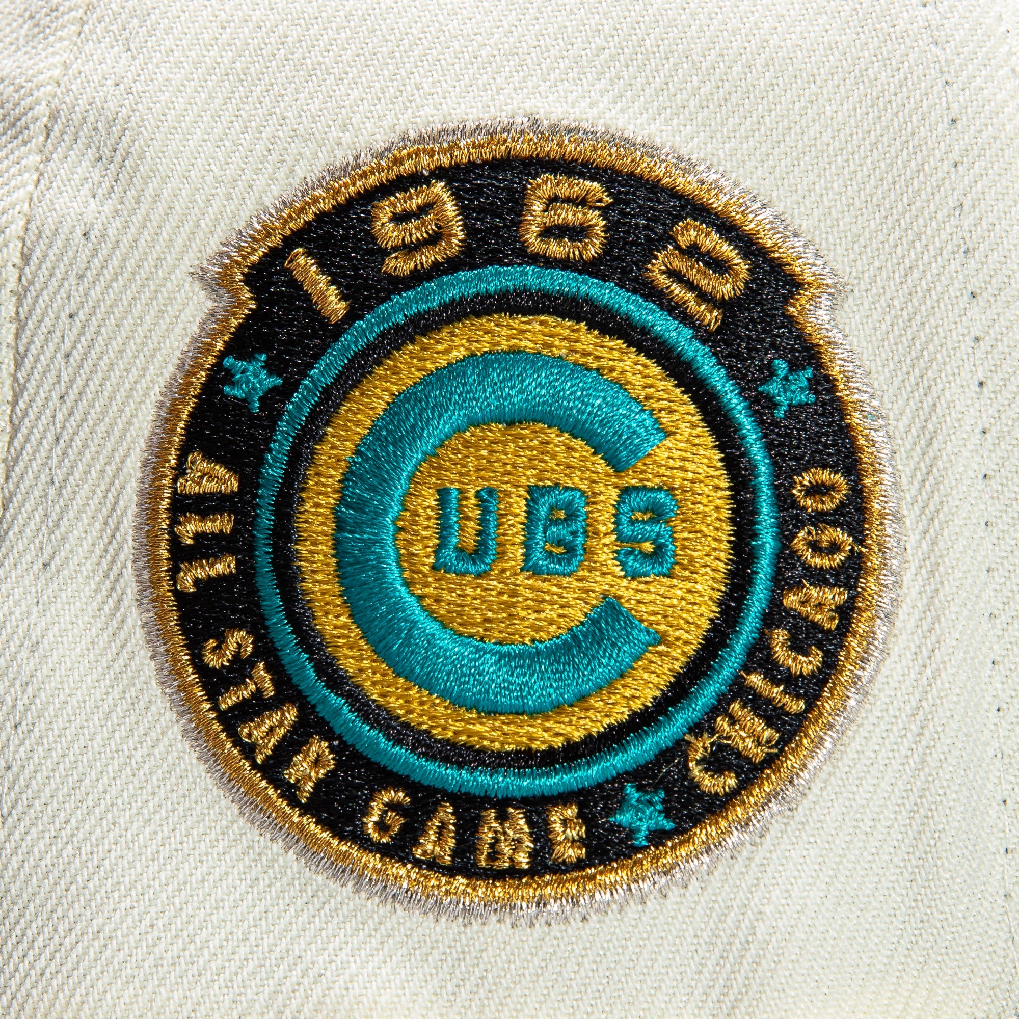 This New Era Tropics Chicago Cubs 1962 All-Star Game 59FIFTY Fitted Hat is a Hat Club exclusive. The fitted has a white six panel structured high crown with teal embroidered eyelets and fabric squatchee button. The fitted cap has a black flat bill with a teal undervisor and black sweatband. The front panel features the Chicago Cubs logo embroidery and a side patch embroidery on the right panel. The left panel of the fitted displays the New Era logo and the official MLB logo embroidery on the rear crown.