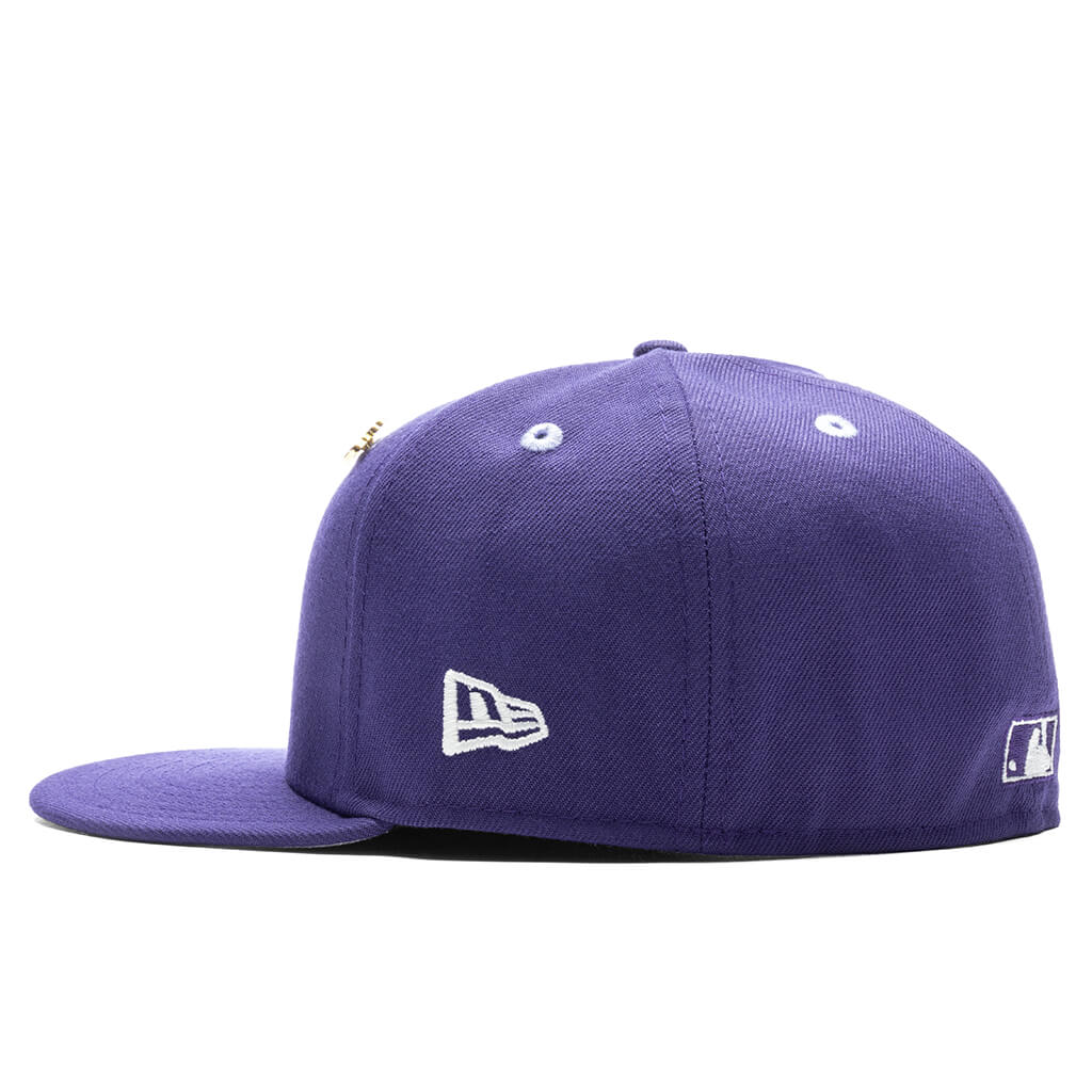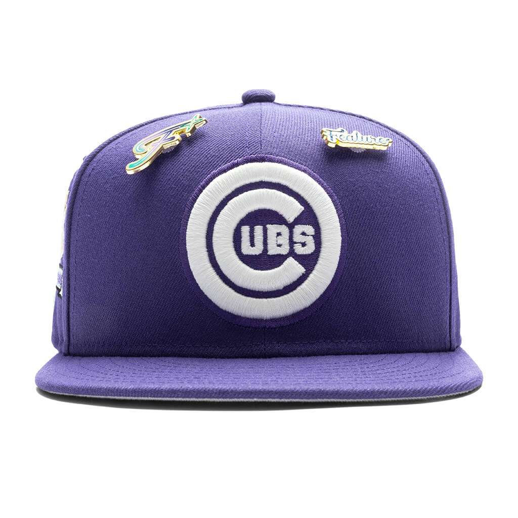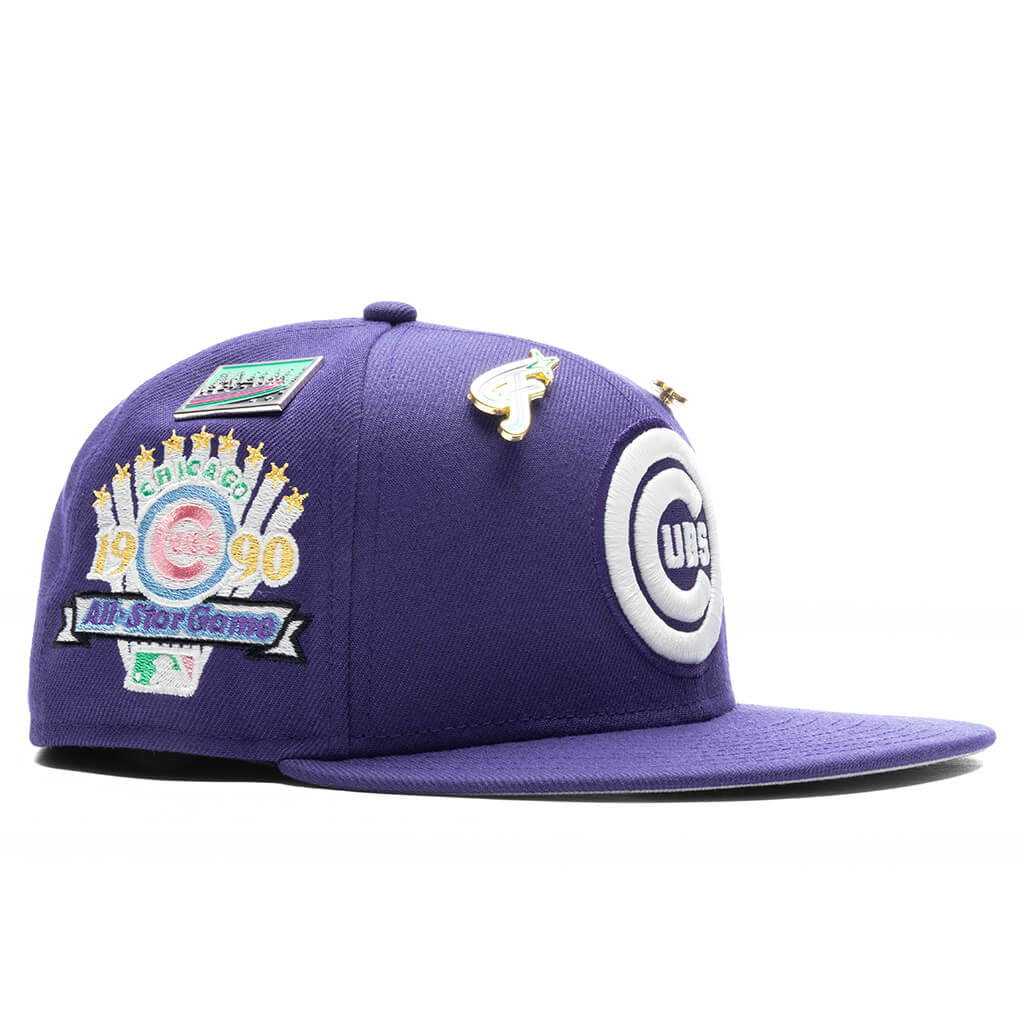 This New Era x Feature Chicago Cubs Northern Lights 59FIFTY Fitted Hat was released by Feature. The Northern Lights fitted has a light navy blue six panel structured high crown, grey embroidered eyelets and light navy blue flat bill. The fitted cap has a grey bottom undervisor with a black sweatband . The front panel features the Chicago Cubs logo embroidery and a side patch embroidered on the right panel. The left panel of the fitted displays the New Era logo and the official MLB logo embroidery on the rear crown.