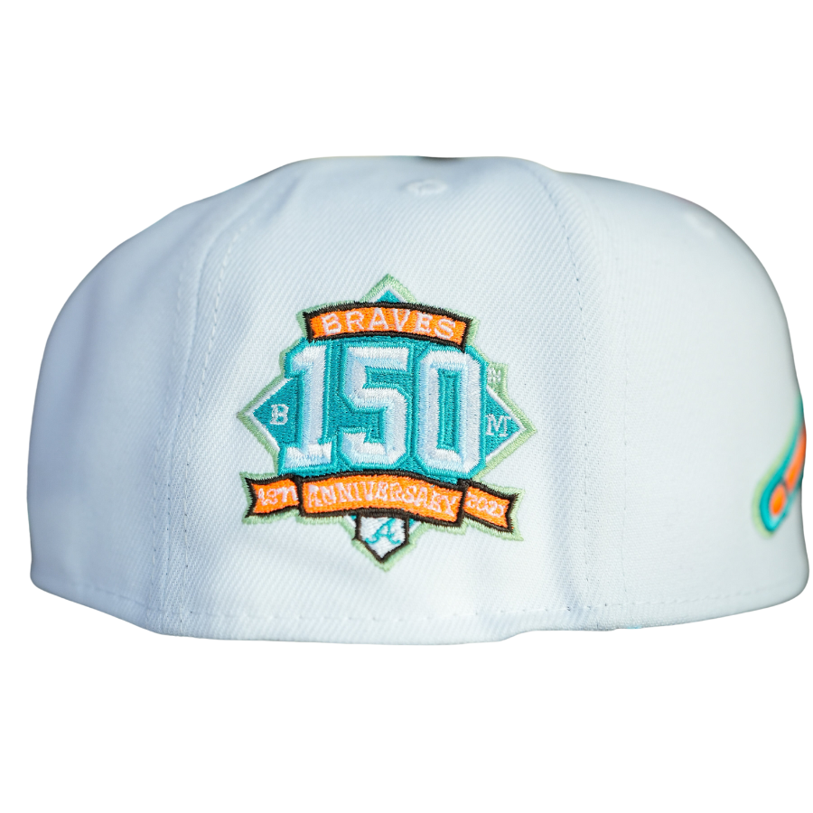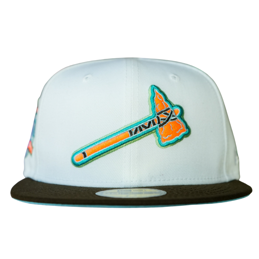 This New Era Atlanta Braves "Digital Heaven" 59FIFTY fitted hat was released by Better Generation. The fitted features a white six panel structured high crown and embroidered eyelets with a walnut brown fabric squatchee button and flat visor. The front panel includes the MLB logo embroidery and a side patch on the righ-wear side.