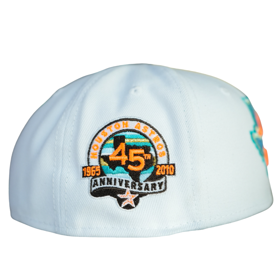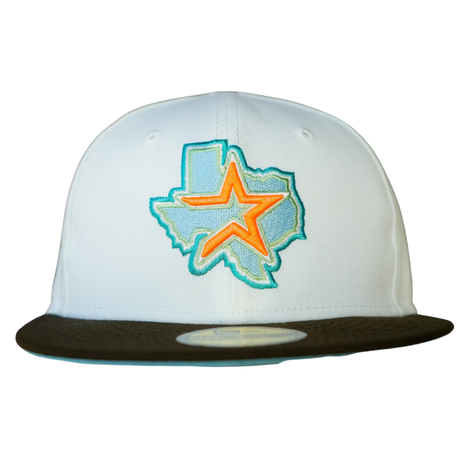 This New Era Houston Astros "Digital Heaven" 59FIFTY fitted hat was released by Better Generation. The fitted features a white six panel structured high crown and embroidered eyelets with a walnut brown fabric squatchee button and flat visor. The front panel includes the MLB logo embroidery and a side patch on the righ-wear side.