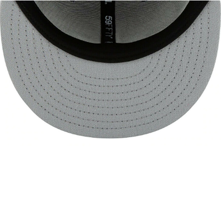 Game of Thrones House of the Dragon, House Targaryen fitted hat has a black and red colorway. The six panel structured high crown, embroidered eyelets and fabric squatchee button of the fitted are black. The flat bill of the fitted is also black with a grey bottom undervisor and black sweatband. The front panel features the "House Targaryen" logo embroidered in red threads. The iconic New Era logo is embroidered in red threads on the left panel.