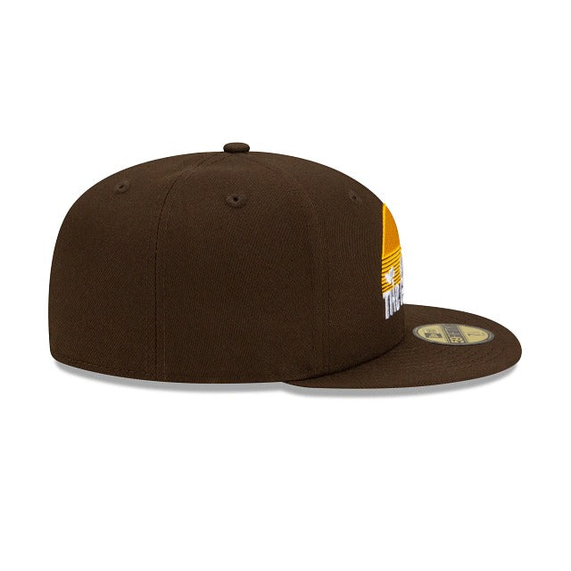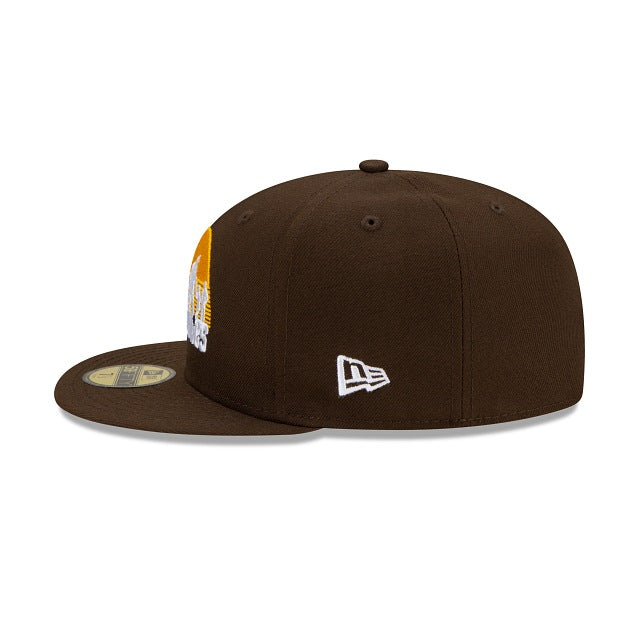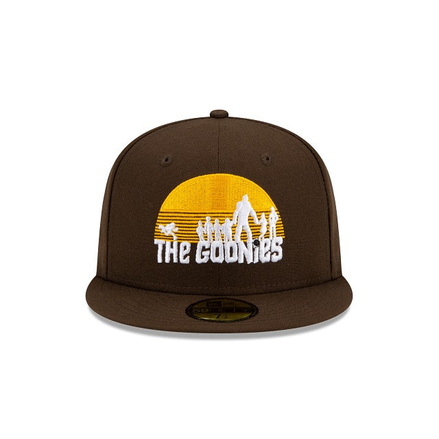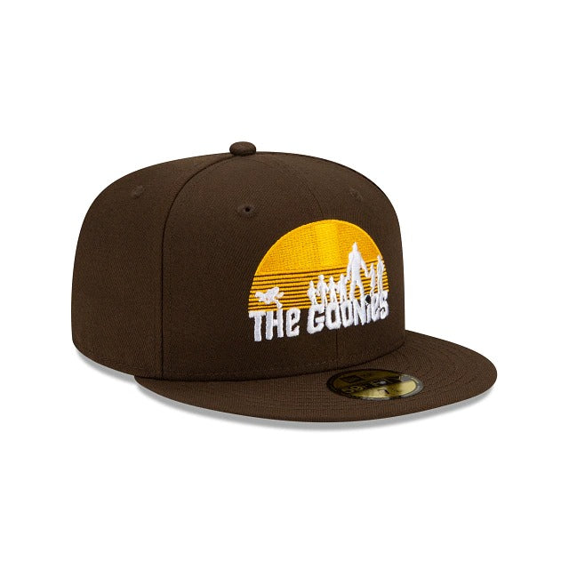 Do the truffle shuffle with The Goonies Sunrise 59FIFTY Fitted Cap featuring an embroidered Goonies graphic at the front panels with The Goonies logo at the rear and a gray undervisor.