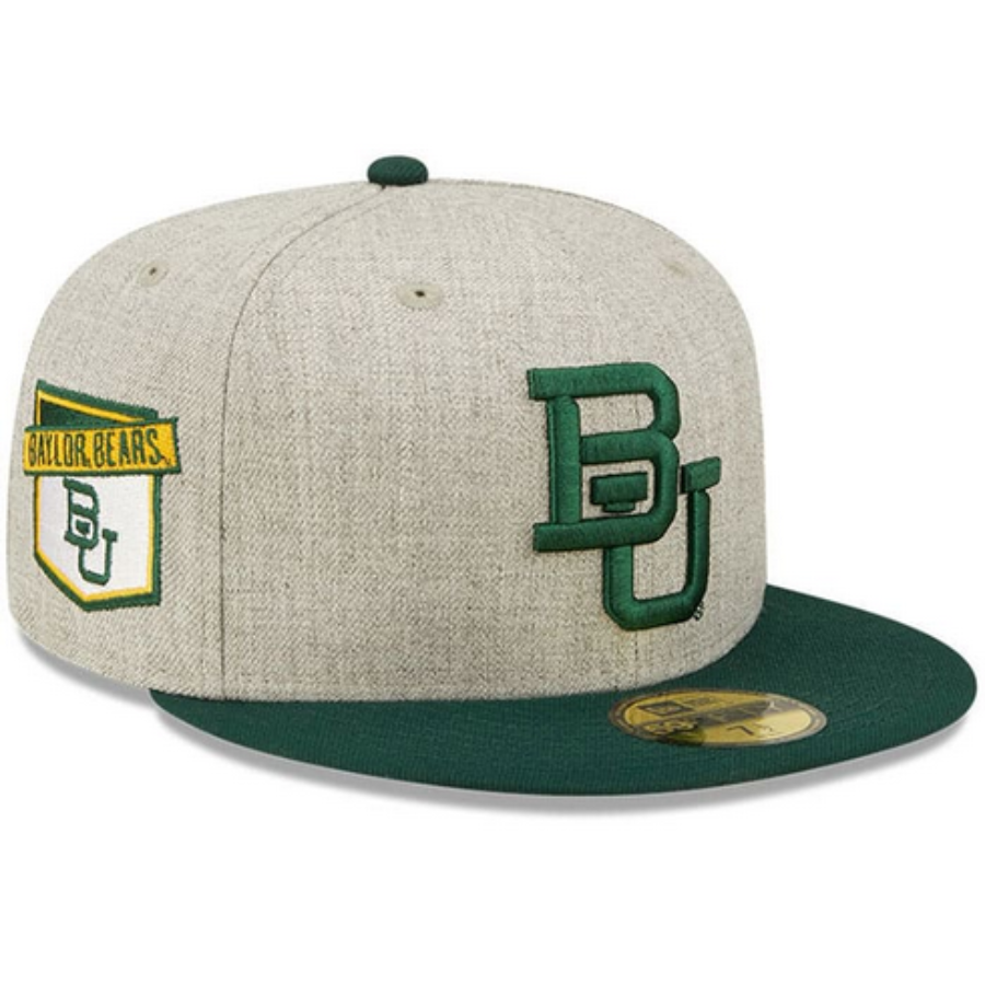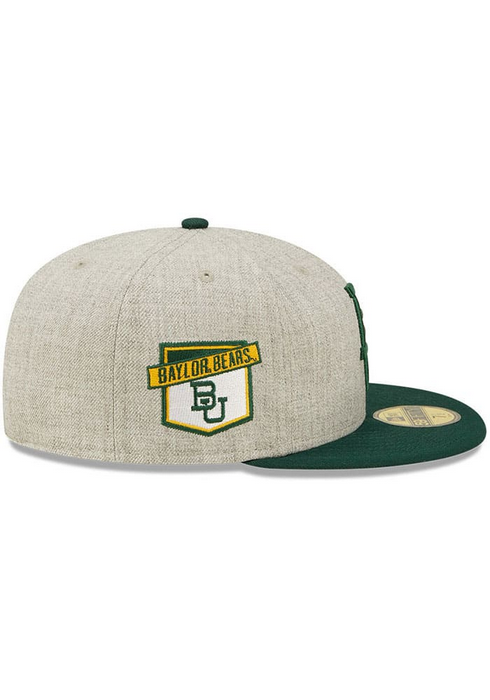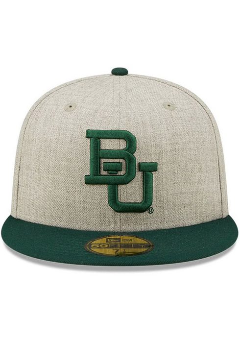 This Baylor Bears Heather Grey fitted hat has a six panel structure high crown, embroidered eyelets, fabric squatchee button, flat bill and a side patch on the right-wear side.