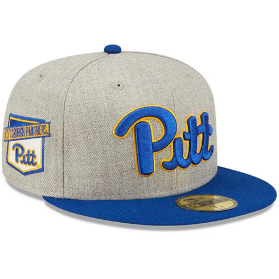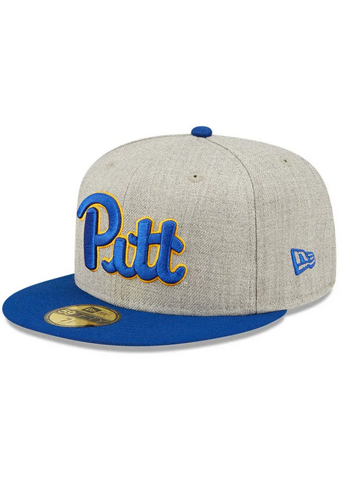 This Pitt Panthers Heather Grey fitted hat has a six panel structure high crown, embroidered eyelets, fabric squatchee button, flat bill and a side patch on the right-wear side.