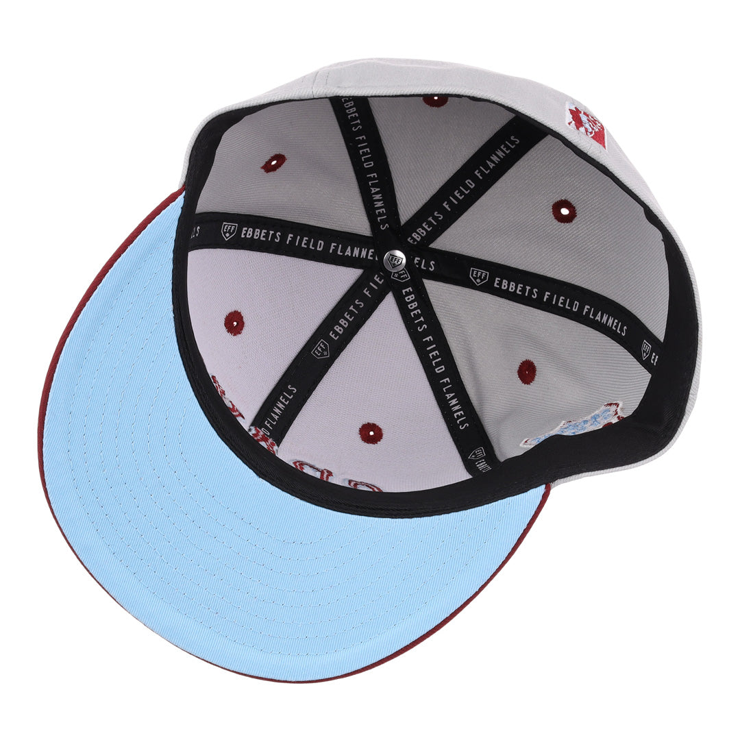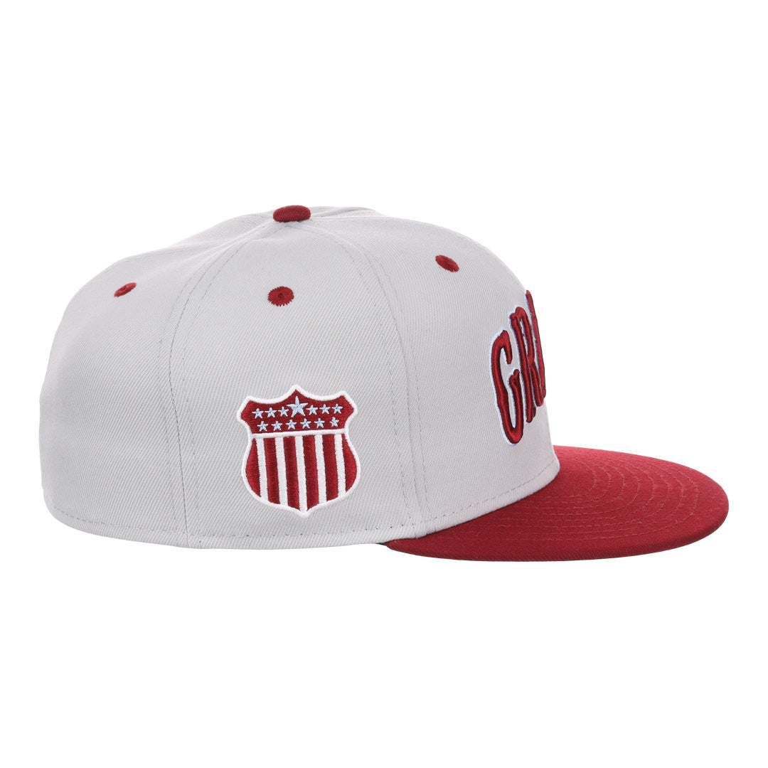 Description: Featuring a two-tone construction with storm gray crown and maroon visor, the Storm Chaser Vintage Inspired fitted collection takes some of our favorite teams and their logos, and recontextualizes them to create fashion pieces that will shine in your wardrobe. The contemporary high crown structured fitted cap features raised embroidery front logo with embroidered side patch and rear league logo.