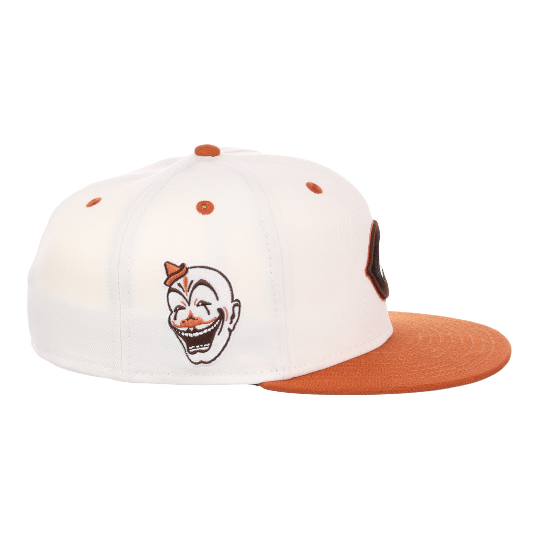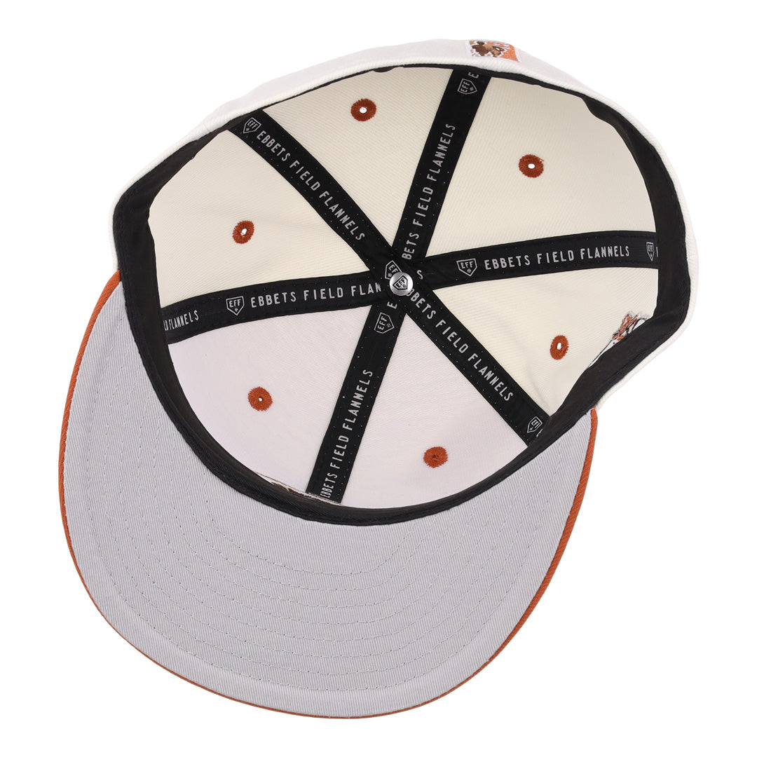 Description: Featuring brown and orange tones, the Sandbag Vintage Inspired fitted collection takes some of our favorite teams and their logos, and recontextualizes them to create fashion pieces that will shine in your wardrobe. The contemporary high crown structured fitted cap features raised embroidery front logo with embroidered side patch and rear league logo.