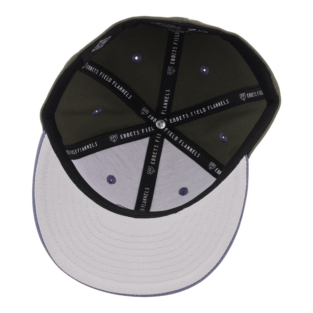 Description: Featuring a two-tone construction with olive crown and slate visor, the Mossy Slate Vintage Inspired fitted collection takes some of our favorite teams and their logos, and recontextualizes them to create fashion pieces that will shine in your wardrobe. The contemporary high crown structured fitted cap features raised embroidery front logo with embroidered side patch and rear league logo.