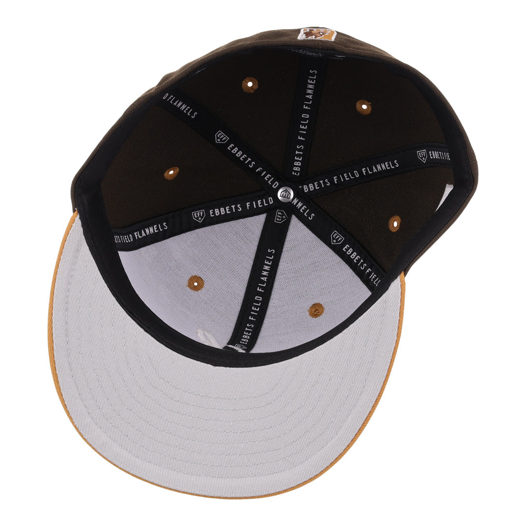 Description: Featuring brown and orange tones, the Sandbag Vintage Inspired fitted collection takes some of our favorite teams and their logos, and recontextualizes them to create fashion pieces that will shine in your wardrobe. The contemporary high crown structured fitted cap features raised embroidery front logo with embroidered side patch and rear league logo.