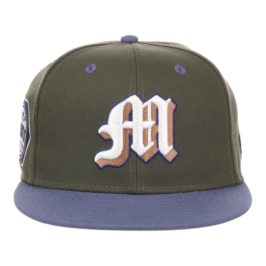 Description: Featuring a two-tone construction with olive crown and slate visor, the Mossy Slate Vintage Inspired fitted collection takes some of our favorite teams and their logos, and recontextualizes them to create fashion pieces that will shine in your wardrobe. The contemporary high crown structured fitted cap features raised embroidery front logo with embroidered side patch and rear league logo.