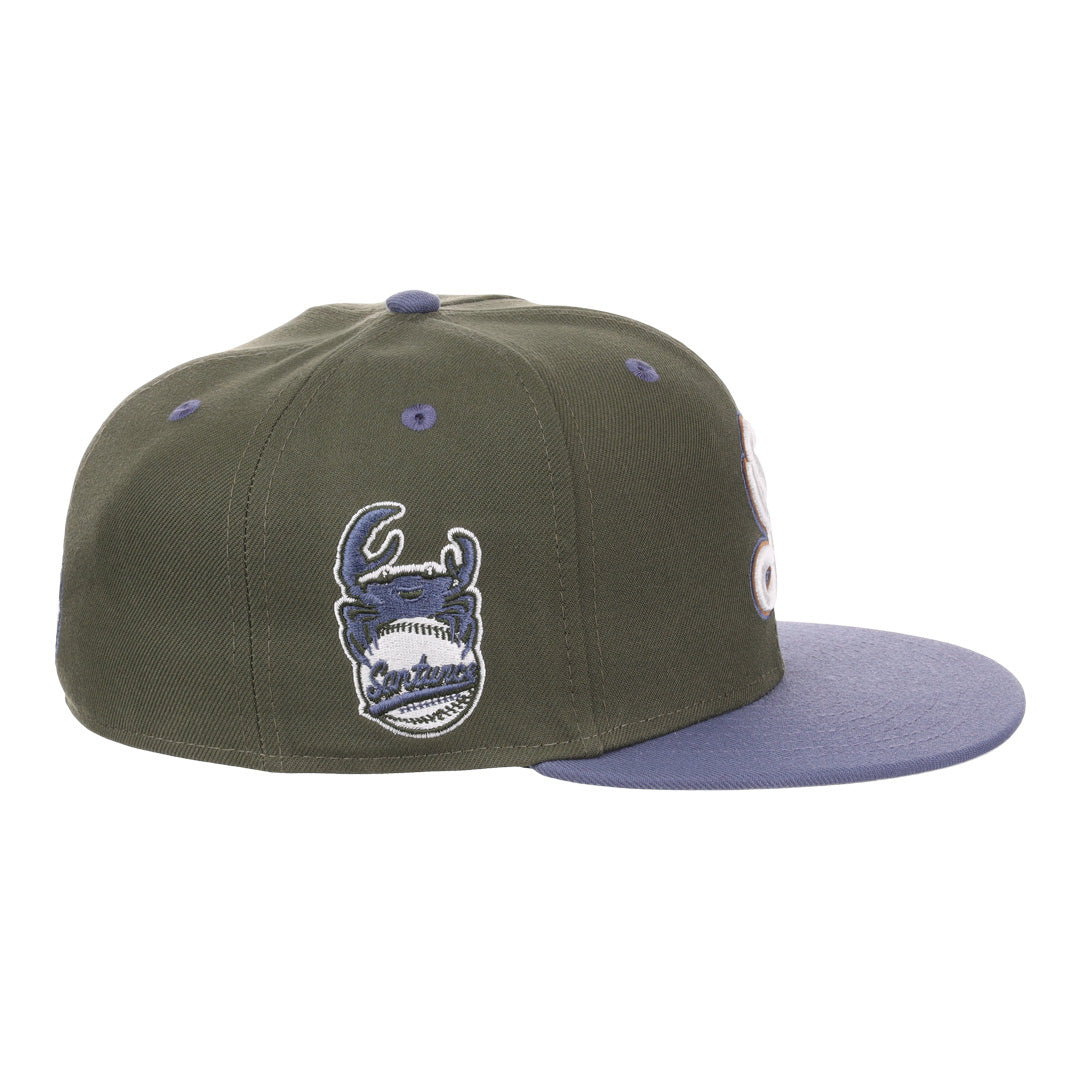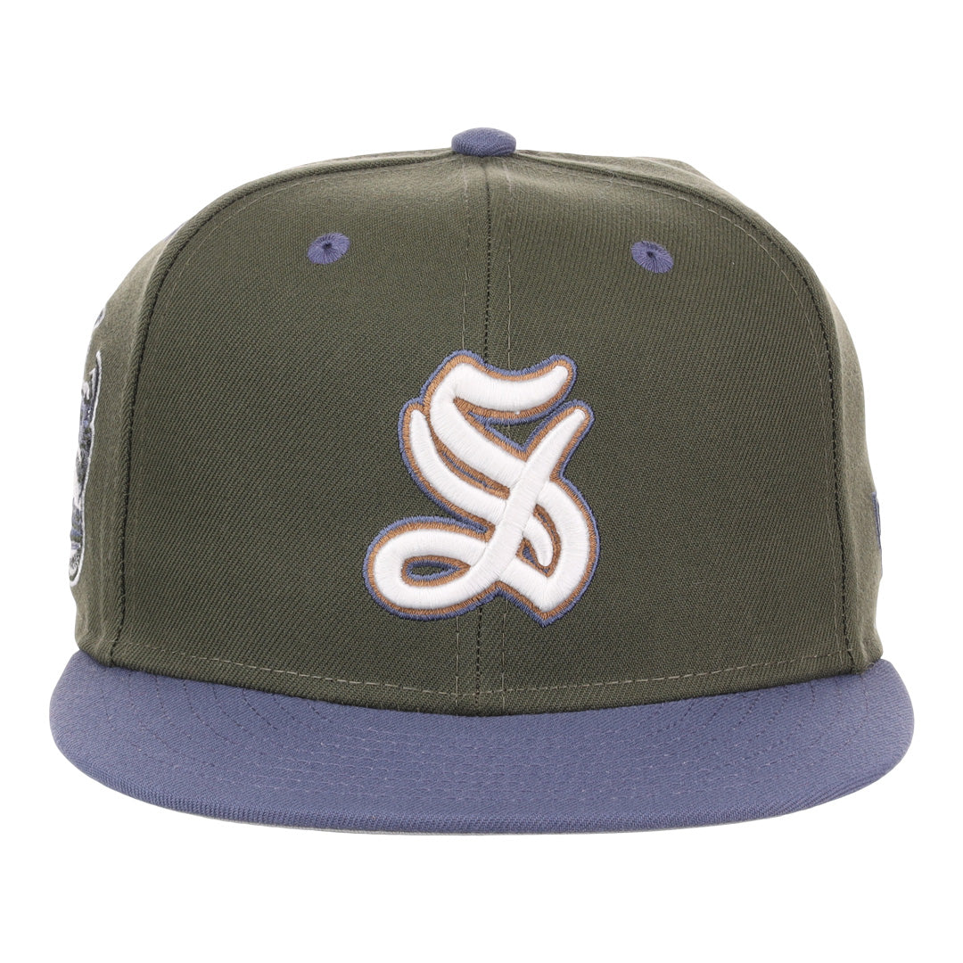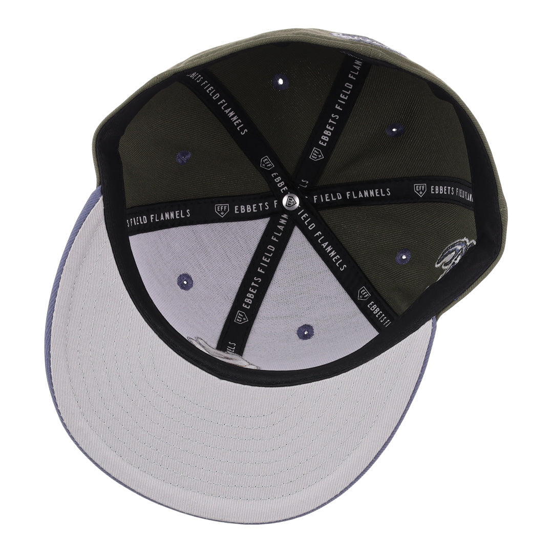 Description: Featuring a two-tone construction with olive crown and slate visor, the Mossy Slate Vintage Inspired fitted collection takes some of our favorite teams and their logos, and recontextualizes them to create fashion pieces that will shine in your wardrobe. The contemporary high crown structured fitted cap features raised embroidery front logo with embroidered side patch and rear league logo.