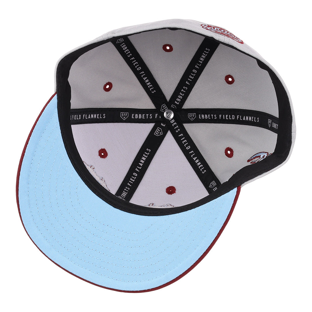 Description: Featuring a two-tone construction with storm gray crown and maroon visor, the Storm Chasers Vintage Inspired fitted collection takes some of our favorite teams and their logos, and recontextualizes them to create fashion pieces that will shine in your wardrobe. The contemporary high crown structured fitted cap features raised embroidery front logo with embroidered side patch and rear league logo.