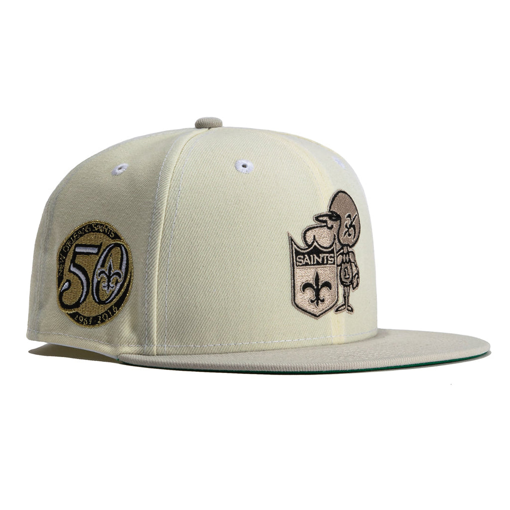 Browse a large selection of New Orleans Saints fitted hats. Check out multiple shops selling the latest, officially NFL licensed, 59FIFTY New Era New Orleans Saints fitted caps (high and low crowns) with various colorways, undervisors and embroidered side patches including Pro Bowl, Super Bowl, Anniversary , Conferences. and more. Some of the football caps in this collection have been archived for historical record keeping purposes. The further down you scroll the more likely you will run into fitteds that are no longer being sold.