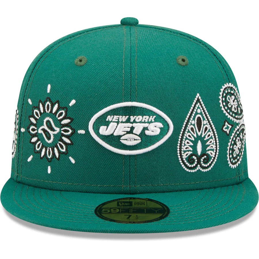 Accentuate your favorite team's logo with this New York Jets Bandana 59FIFTY hat from New Era. It features raised New York Jets graphics embroidered in the middle of bandana-inspired designs. The fitted construction also ensures this structured cap fits you perfectly.