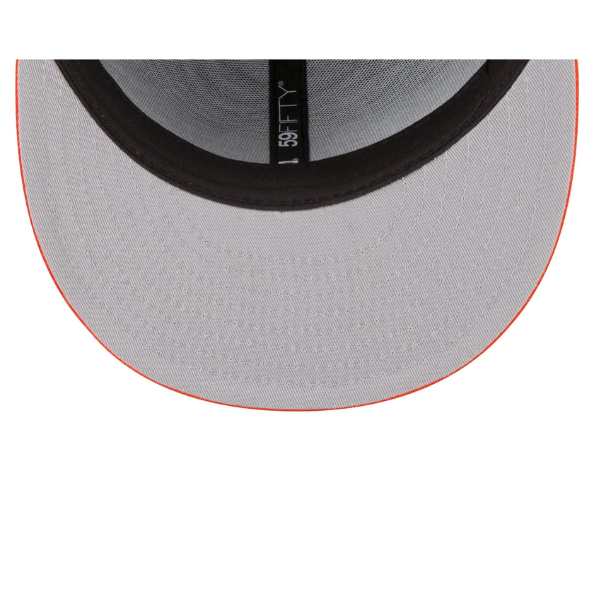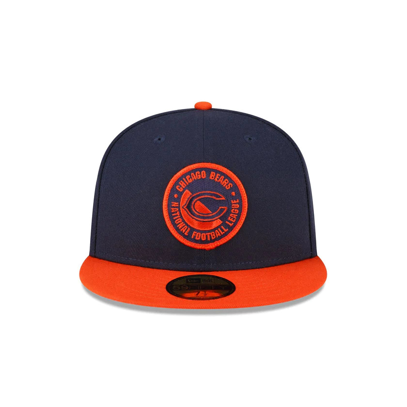The Chicago Bears 2023 Sideline Team Patch 59FIFTY Fitted Cap features an embroidered Chicago Bears patch at the front panels with a matching NFL Shield at the right-wear side. Additional details include a team wordmark at the rear and a gray undervisor.