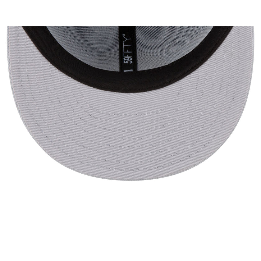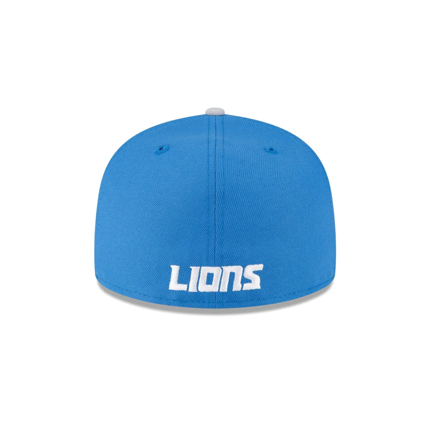 The Detroit Lions 2023 Sideline Team Patch 59FIFTY Fitted Cap features an embroidered Detroit Lions patch at the front panels with a matching NFL Shield at the right-wear side. Additional details include a team wordmark at the rear and a gray undervisor.