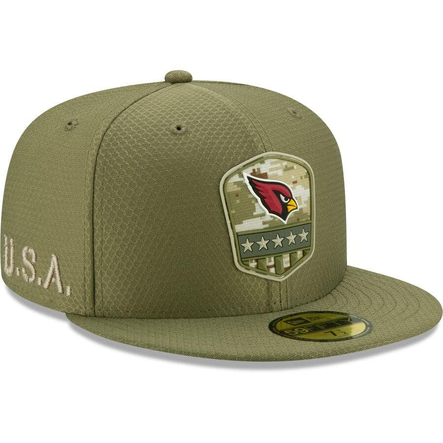 Support your Arizona Cardinals while showing respect and gratitude for our service members with our new 2019 On-Field Salute to Service Collection. This New Era 59FIFTY Fitted Hat is a fitted cap with a flat visor featuring hex tech performance fabric and a silicone team patch on the front. This cap is completed with a woven NFL Salute to Service ribbon located on the back, and "U.S.A." proudly embroidered on the right side. The NFL does not profit from the sale of Salute to Service products. Charitable contributions are donated to the NFL's military nonprofit partners. For more information, please visit www.NFL.com/Salute.